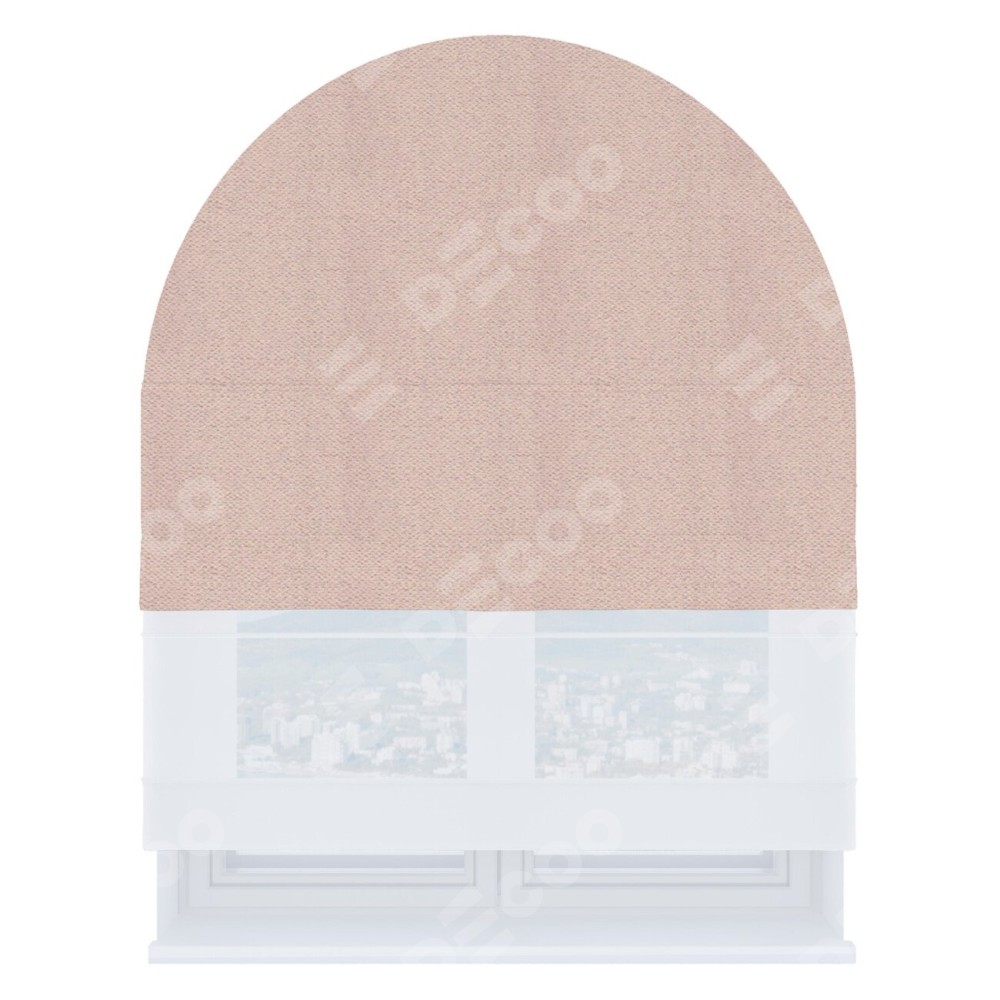 Римская штора день-ночь производителя «Cortin», используется для арочного проёма, пошита из двух полотен, с лицевой стороны блэкаут тиснение с блеском сиреневый артикул 34649, вторая ткань тюль (по стандарту комплектуется тюль белого цвета артикул V-01). Изнаночная сторона основного материала черного цвета, что обеспечивает необходимую светонепроницаемость. Штора шьётся по индивидуальным размерам, для данного типа римской шторы возможная ширина от 60 до 300 см. Удобное управление каждой шторой отдельно.