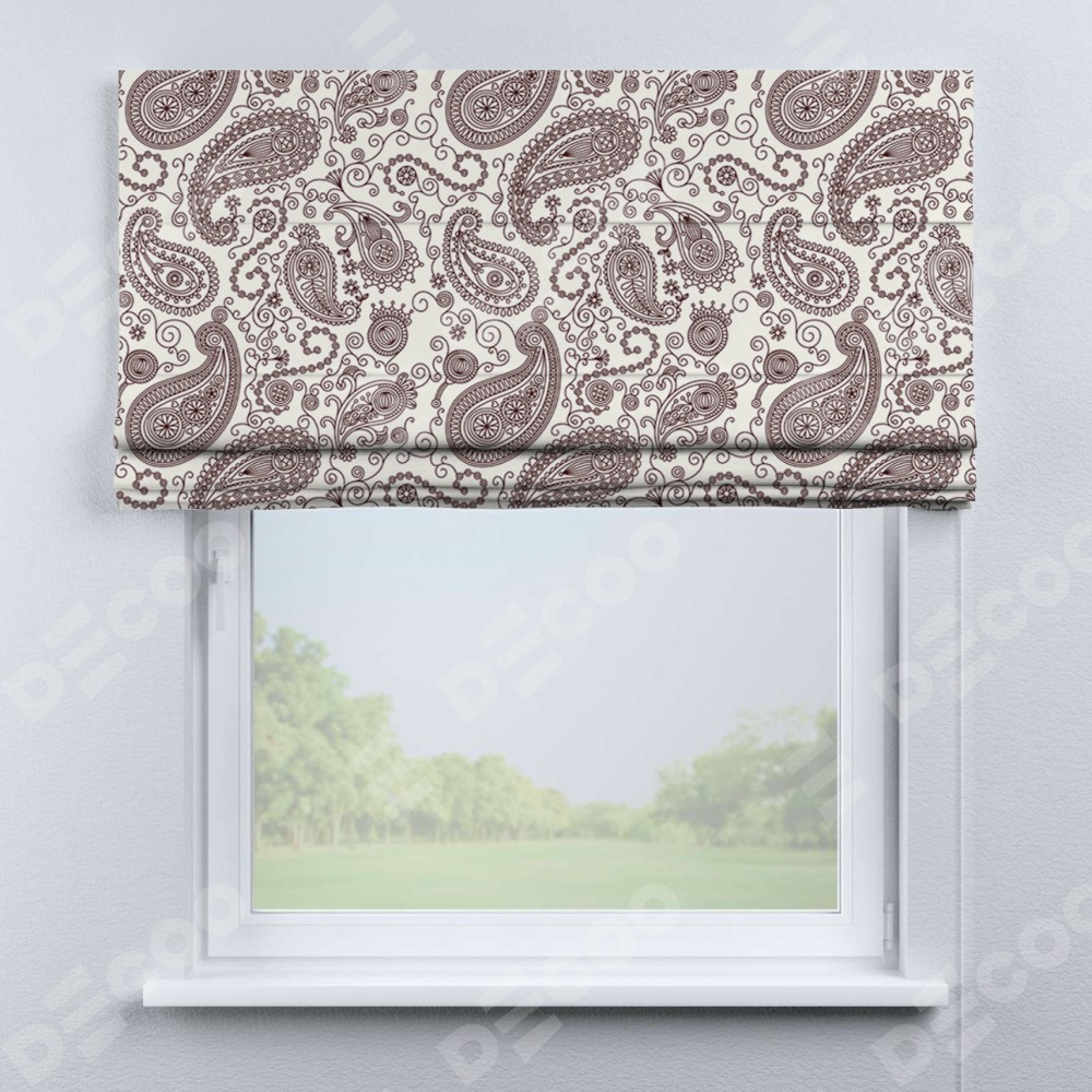 Римская штора производителя «Cortin», используется для проёма, пошита из ткани блэкаут с нанесением сублимационной печати «Индийский узор». Имеет универсальный механизм и подходит для монтажа: на потолок, на стену и в нишу.