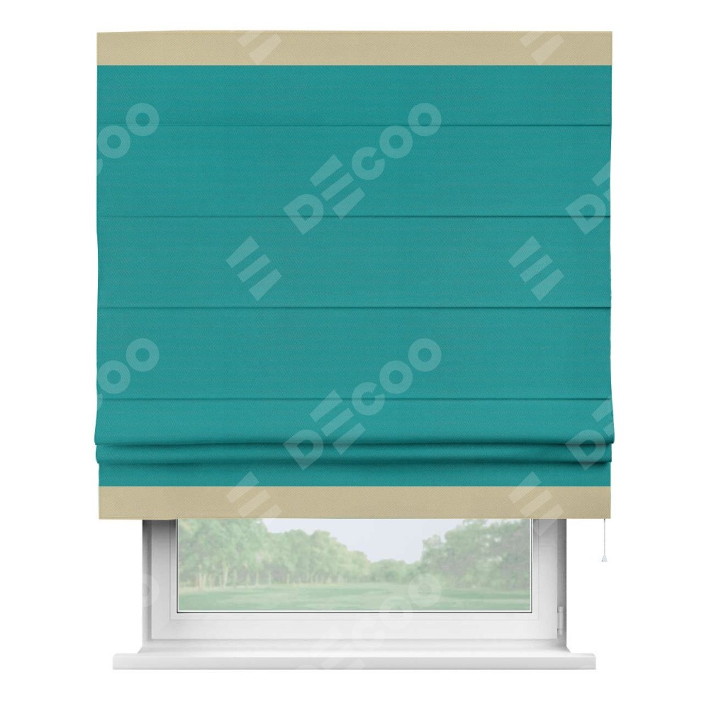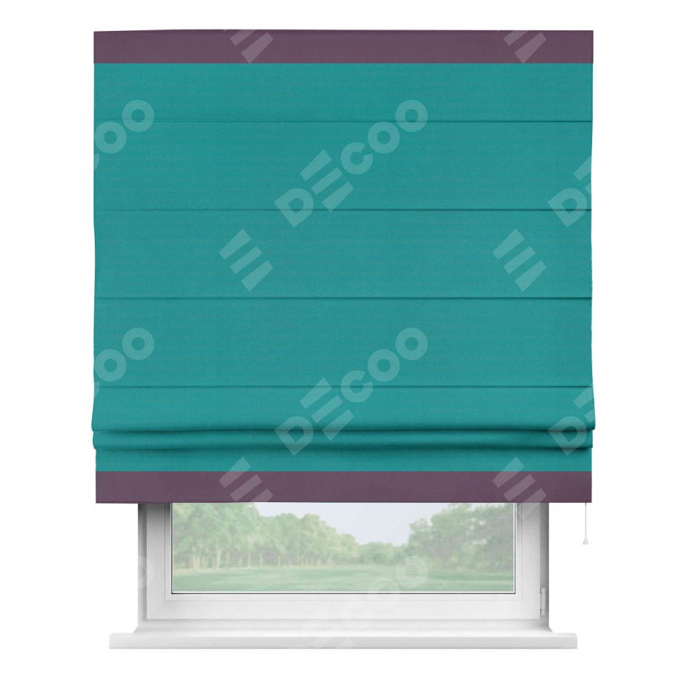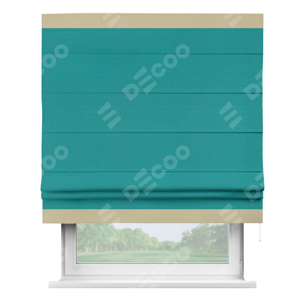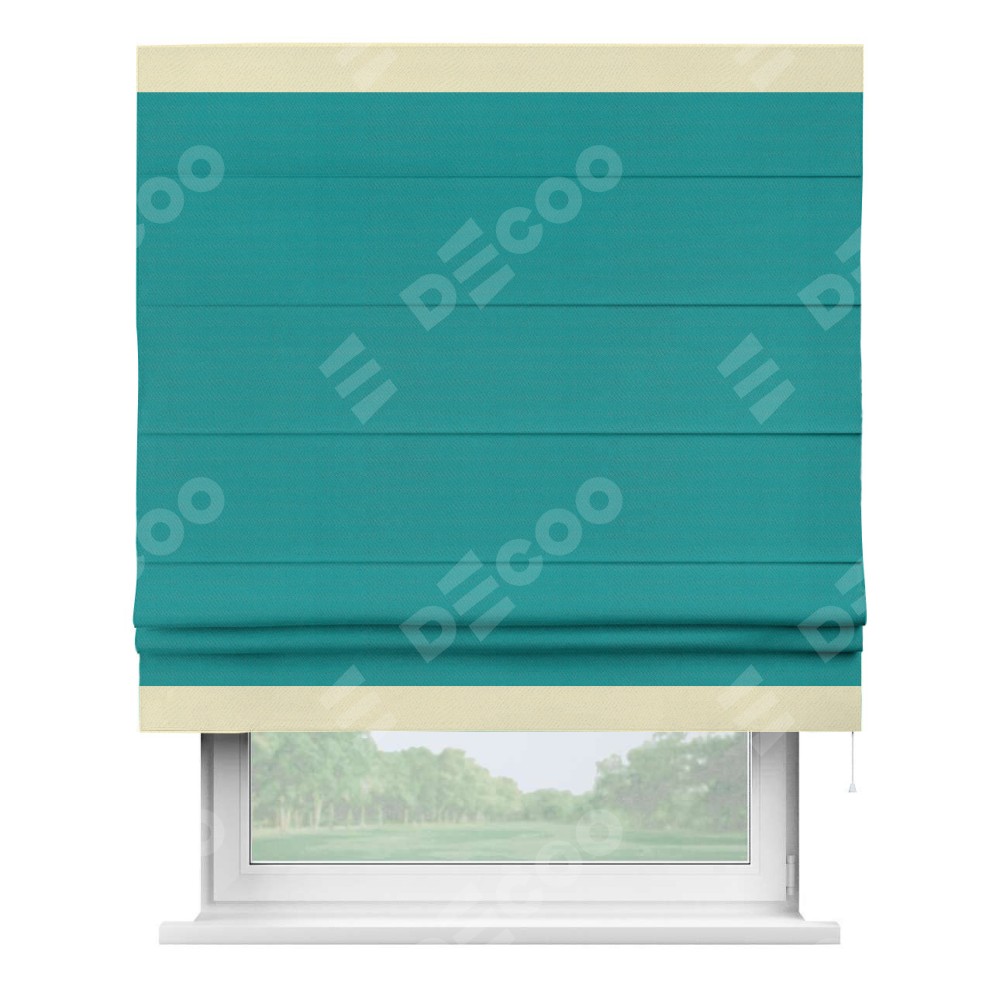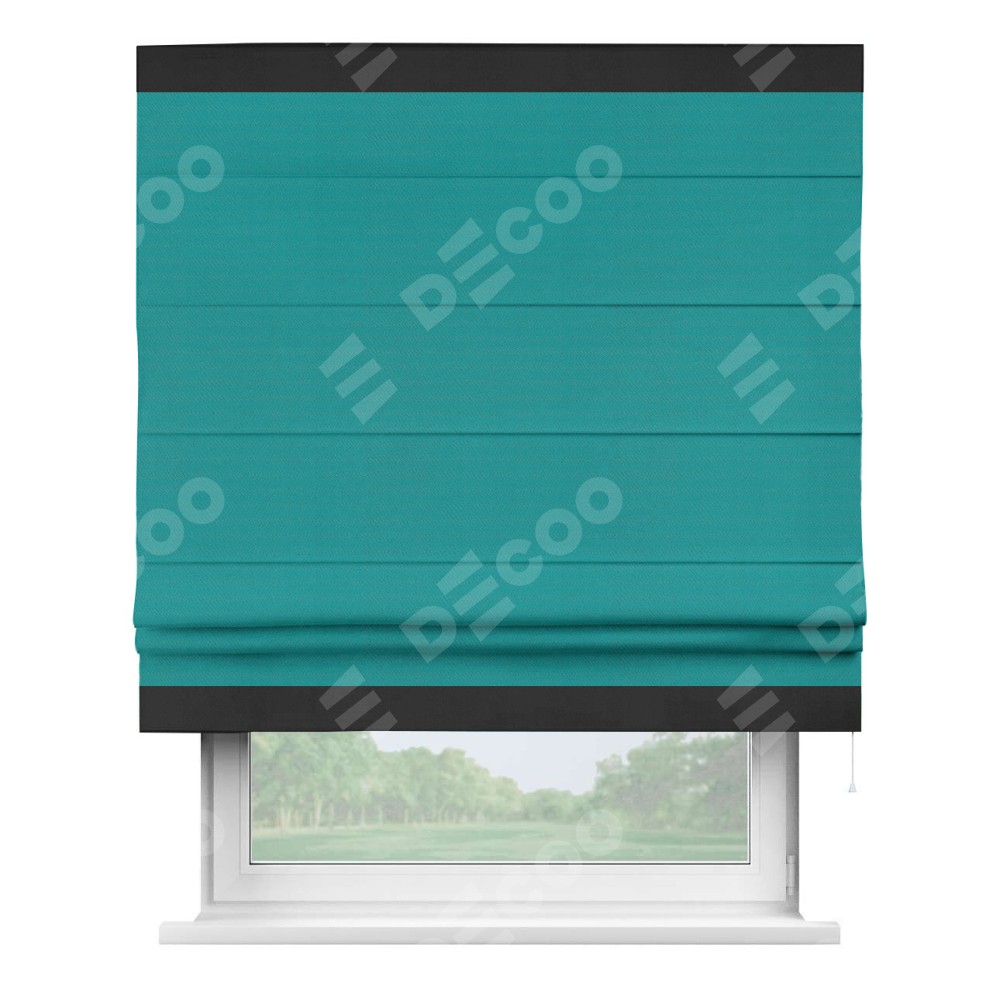 Римская штора «Кортин» с кантом Горизонт, для проема, ткань блэкаут однотонный бирюзовый