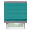 Римская штора производителя «Cortin», используется для проёма, пошита из ткани блэкаут однотонный бирюзовый, артикул ткани 88297. Отделка шторы кантом «Горизонт», ткань для канта используется из блэкаута однотонного разной расцветки на выбор. Имеет универсальный механизм и подходит для монтажа: на потолок, на стену и в нишу.