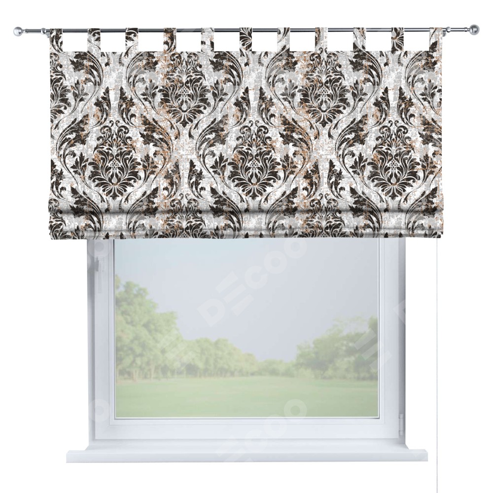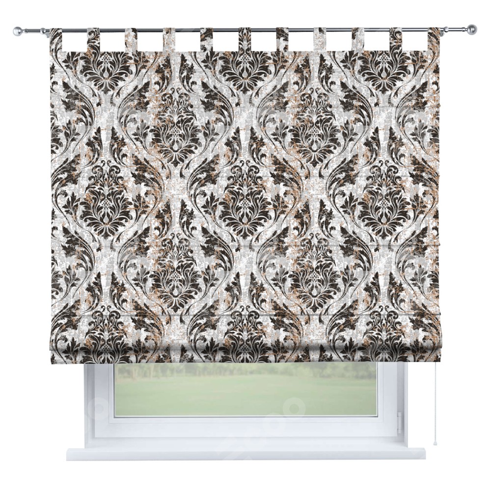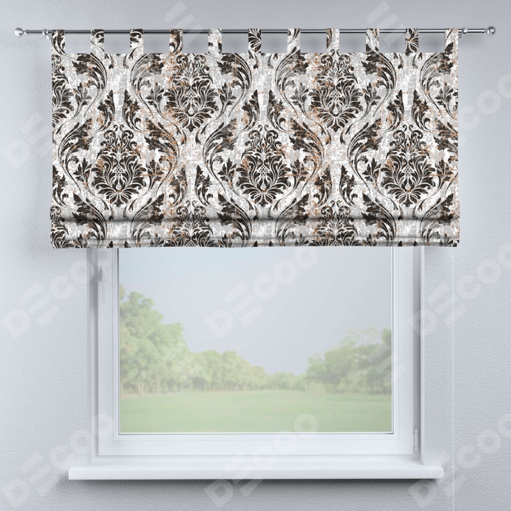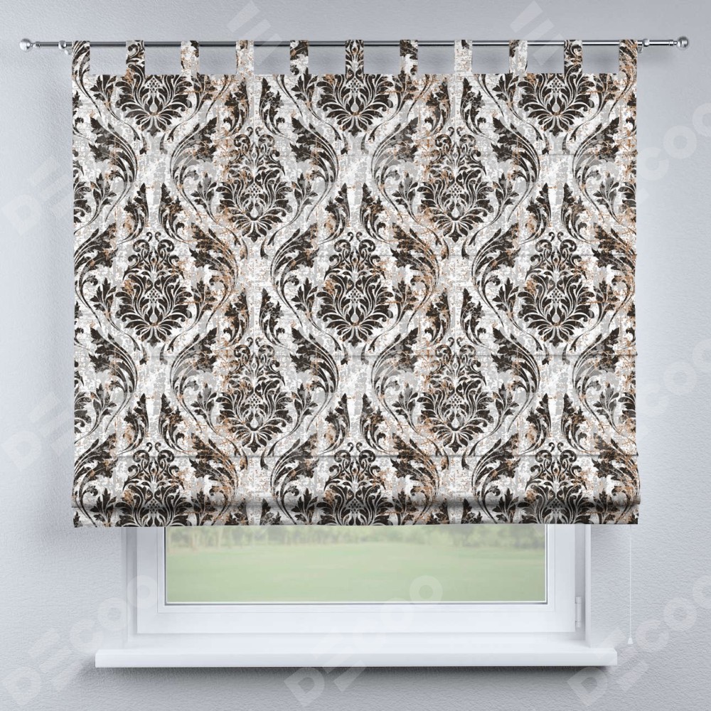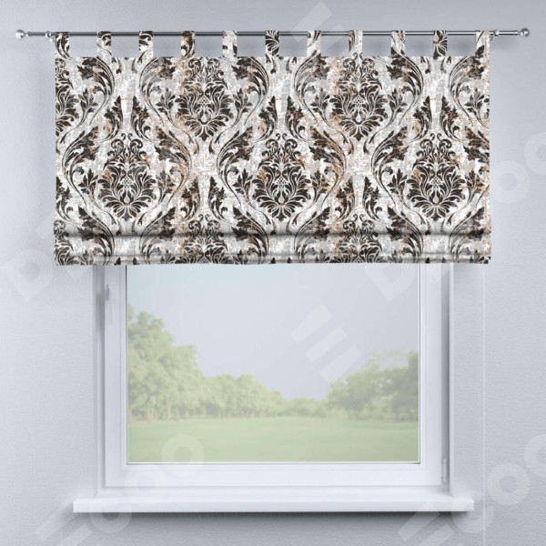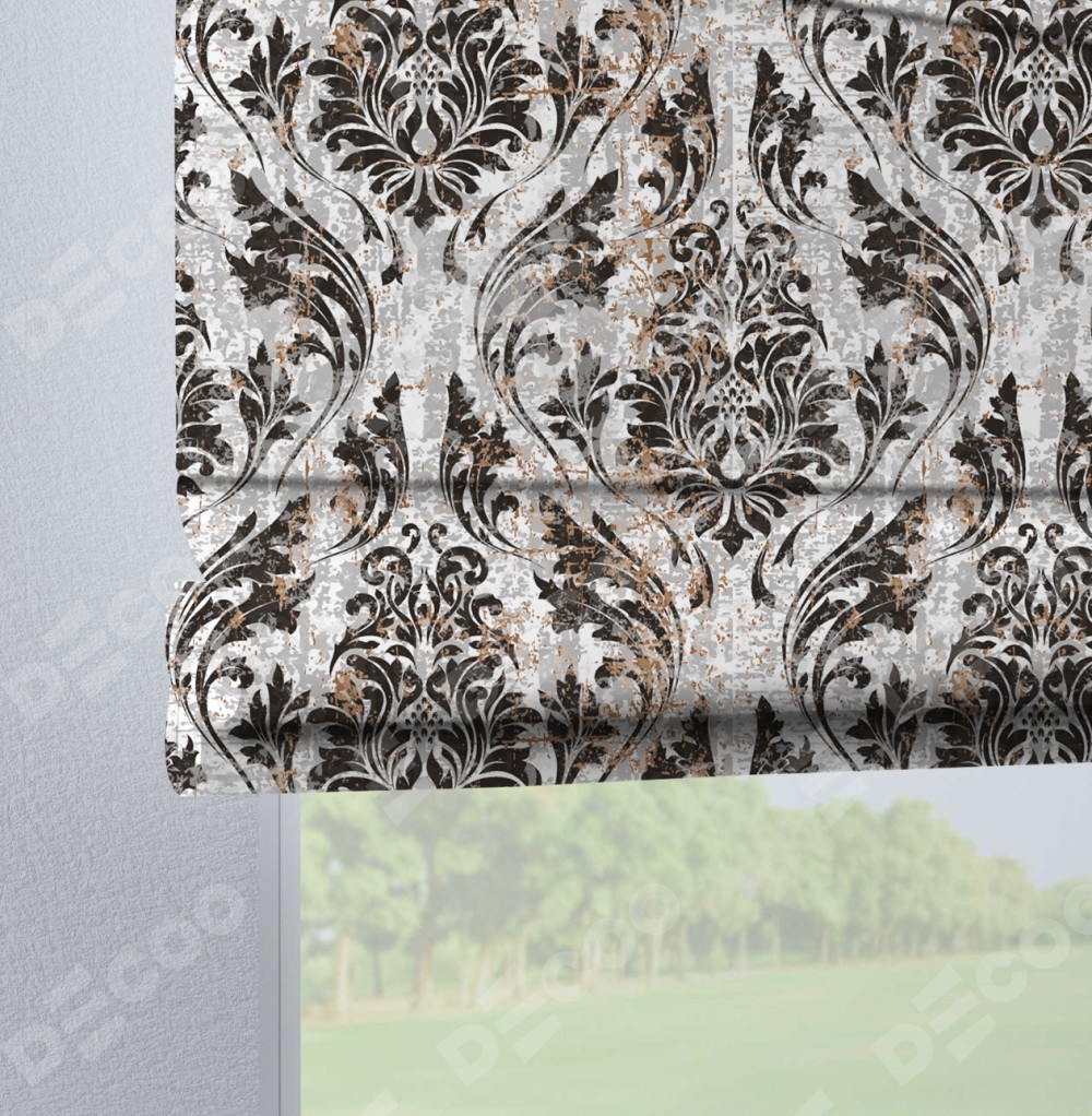 Римская штора производителя «Cortin», используется для проёма, пошита из ткани блэкаут с нанесением сублимационной печати «Дамаск тёмный». Данная модель пошита на петлях, комплектуется на выбор круглым карнизом и подходит для монтажа на стену. Римская штора на петлях имеет простую систему регулировки высоты, отличительным преимуществом данной модели является простой способ монтажа. Достаточно повесить ее на трубу и штора готова!