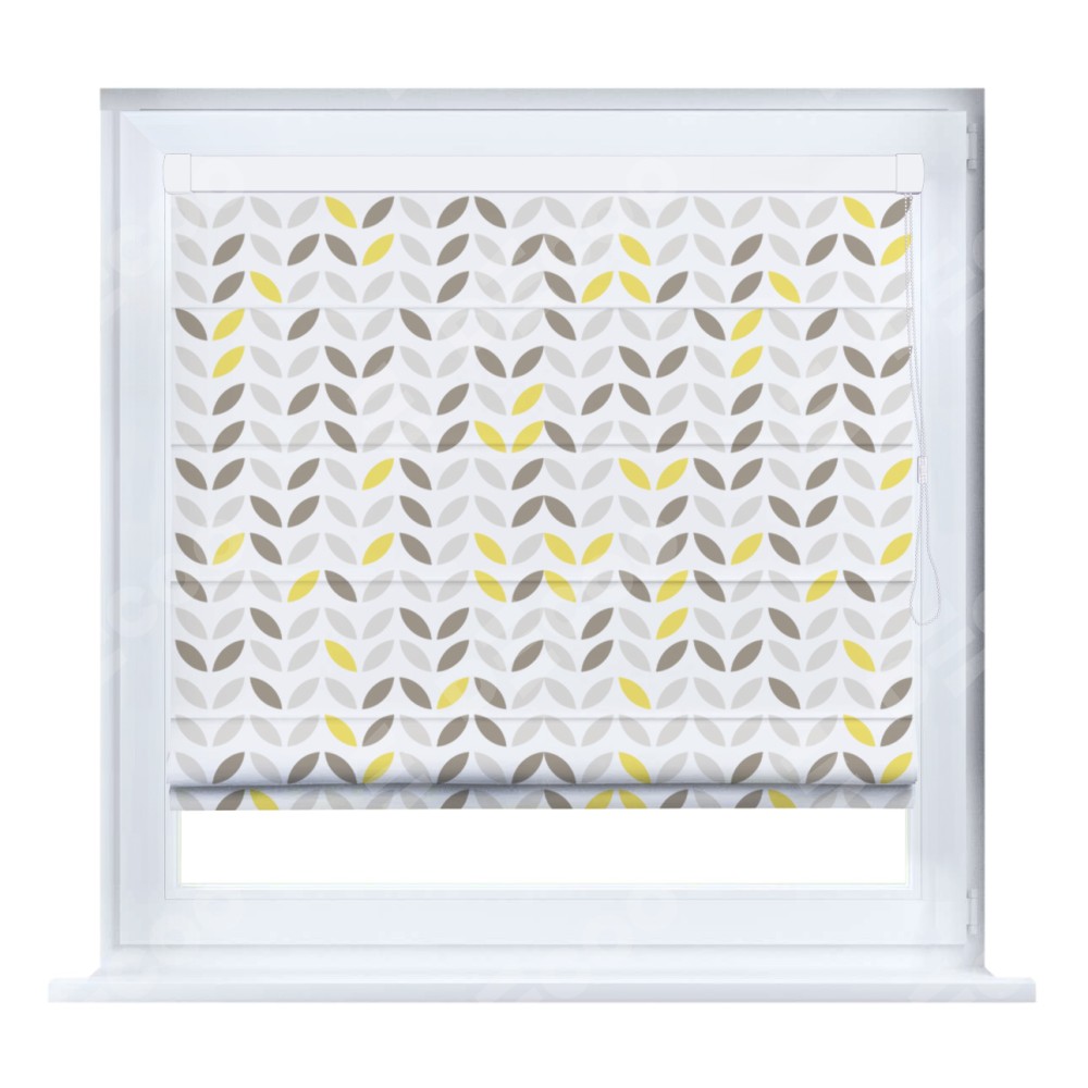 Римская штора производителя «Cortin», устанавливается на створку окна, пошита из ткани блэкаут с нанесением сублимационной печати «Маленькие листочки». Штора шьётся по индивидуальным размерам, для данного типа римской шторы возможная ширина от 35 до 150 см., высота до 250 см.