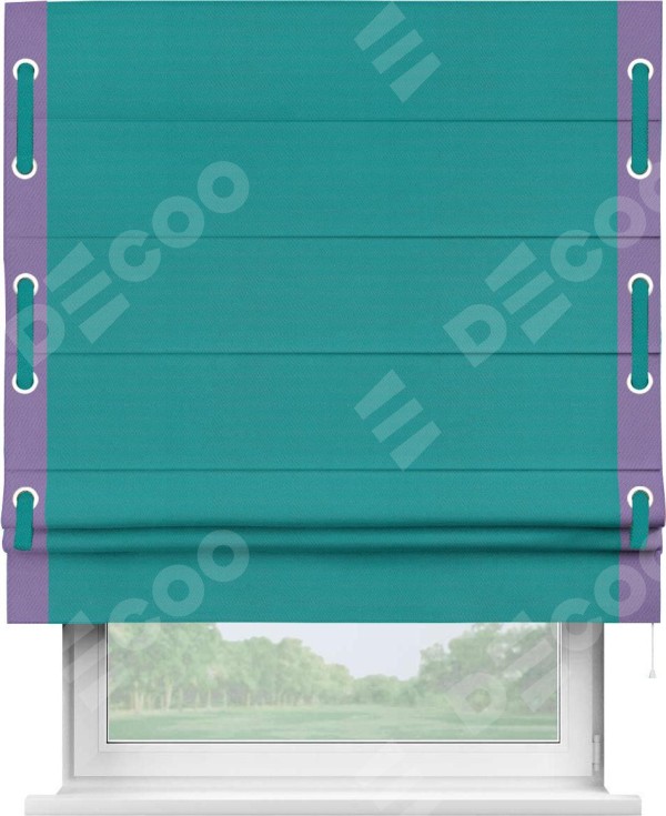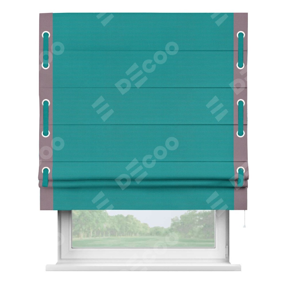 Римская штора «Кортин» с кантом Стрим Дуо (люверсы с пояском), для проема, ткань блэкаут однотонный бирюзовый