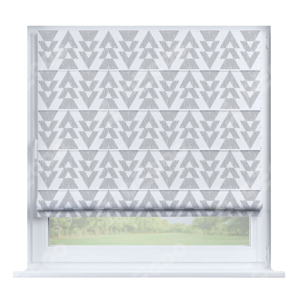 Римская штора производителя «Cortin», устанавливается на створку окна, пошита из ткани блэкаут с нанесением сублимационной печати «Серые стрелки». Штора шьётся по индивидуальным размерам, для данного типа римской шторы возможная ширина от 35 до 150 см., высота до 250 см.