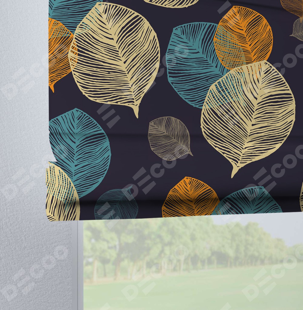 Римская штора на петлях «Листья в ночи»