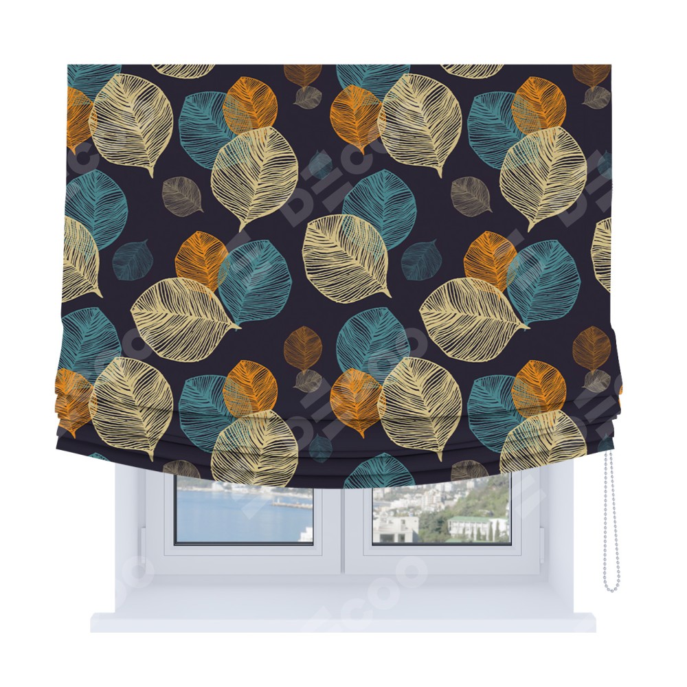 Римская штора Soft с мягкими складками, «Листья в ночи»