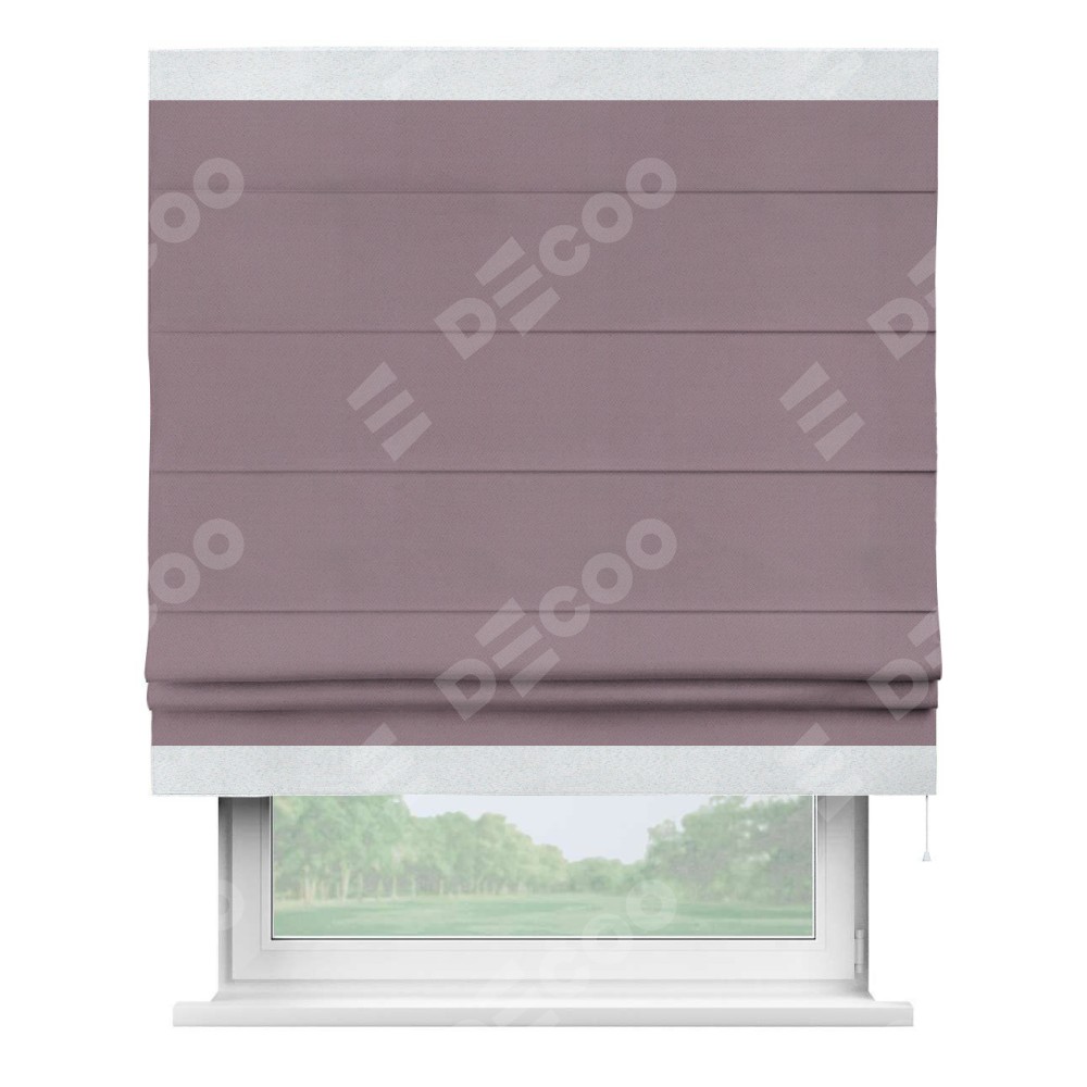 Классическая римская штора представляет собой полотно прикрепленное к карнизу, с обратной стороны полотна вшиты планки. С их помощь при сборе шторы образуются красивые горизонтальные складки.