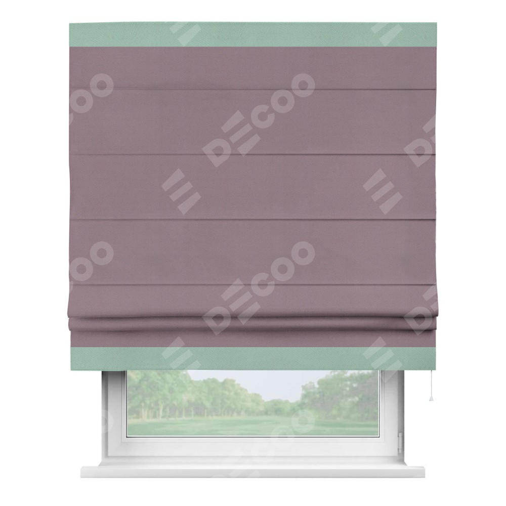 Римская штора производителя «Cortin», используется для проёма, пошита из ткани блэкаут однотонный брусника, артикул ткани 88302. Отделка шторы кантом «Горизонт», ткань для канта используется из блэкаута однотонного разной расцветки на выбор. Имеет универсальный механизм и подходит для монтажа: на потолок, на стену и в нишу.