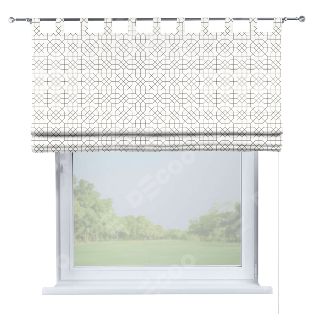 Римская штора производителя «Cortin», используется для проёма, пошита из ткани блэкаут с нанесением сублимационной печати «Орнамент из тонких линий». Данная модель пошита на петлях, комплектуется на выбор круглым карнизом и подходит для монтажа на стену. Римская штора на петлях имеет простую систему регулировки высоты, отличительным преимуществом данной модели является простой способ монтажа. Достаточно повесить ее на трубу и штора готова!