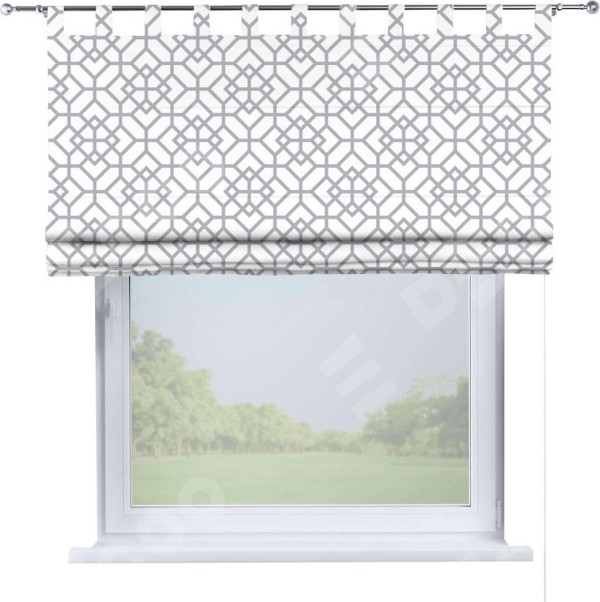 Римская штора производителя «Cortin», используется для проёма, пошита из ткани блэкаут с нанесением сублимационной печати «Архитектурный орнамент». Данная модель пошита на петлях, комплектуется на выбор круглым карнизом и подходит для монтажа на стену. Римская штора на петлях имеет простую систему регулировки высоты, отличительным преимуществом данной модели является простой способ монтажа. Достаточно повесить ее на трубу и штора готова!
