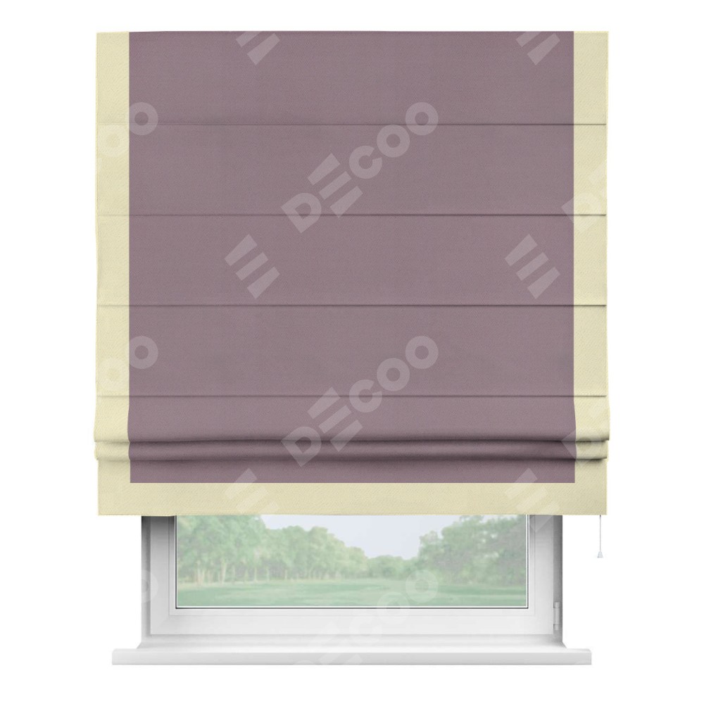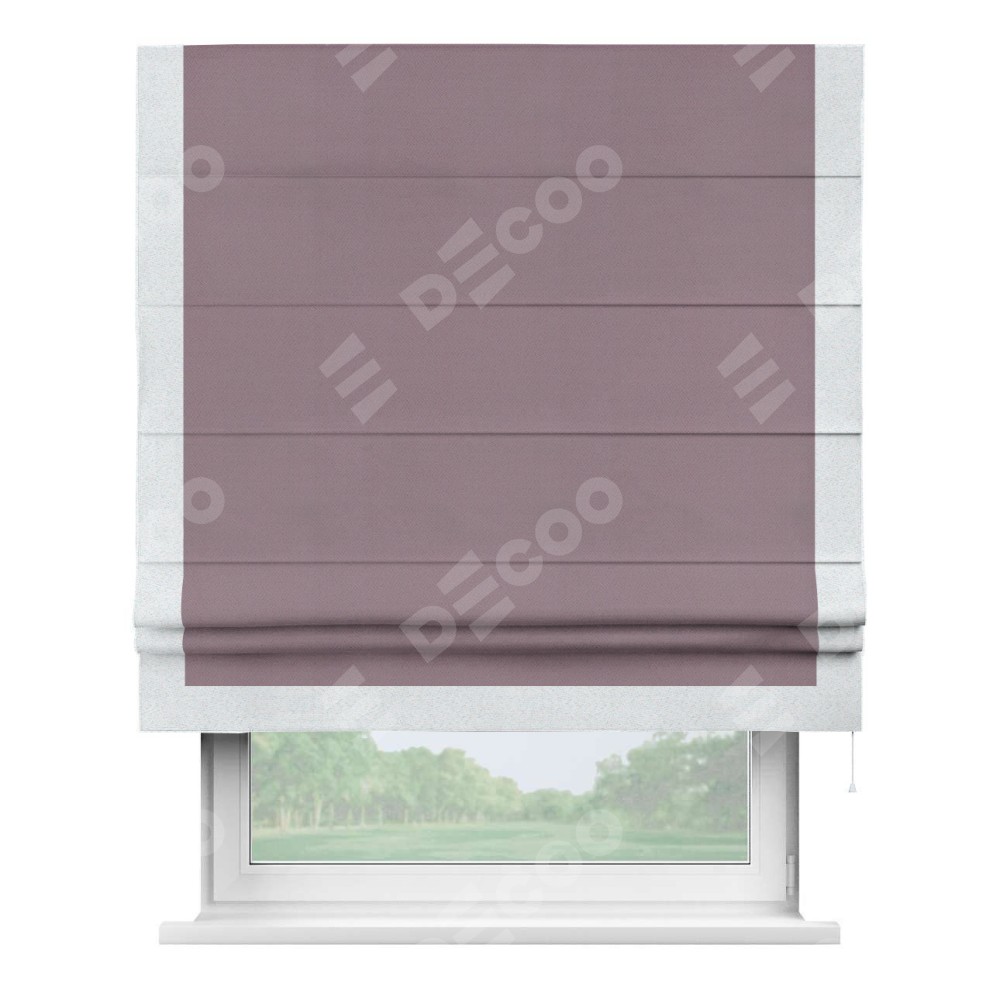 Римская штора производителя «Cortin», используется для проёма, пошита из ткани блэкаут однотонный брусника, артикул ткани 88302. Отделка шторы кантом «Виктория», ткань для канта используется из блэкаута однотонного разной расцветки на выбор. Имеет универсальный механизм и подходит для монтажа: на потолок, на стену и в нишу.