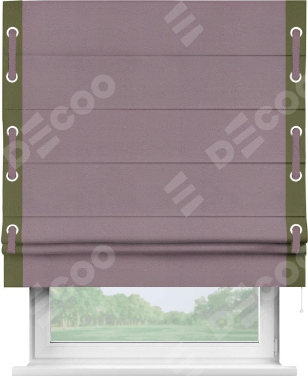 Римская штора «Кортин» с кантом Стрим Дуо (люверсы с пояском), для проема, ткань блэкаут однотонный брусника