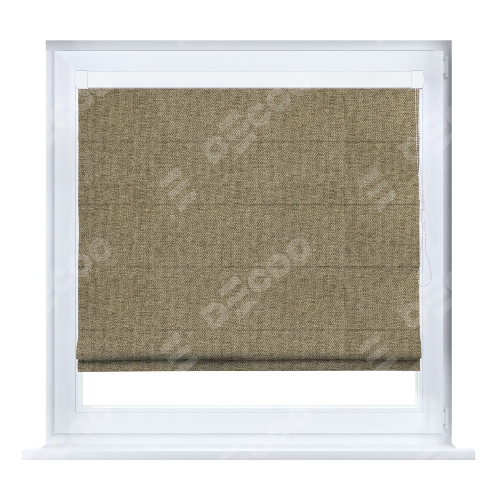 Римская штора производителя «Cortin», устанавливается на створку окна, пошита из ткани стиф димаут тёмно-бежевый, артикул 18085. Штора шьётся по индивидуальным размерам, для данного типа римской шторы возможная ширина от 35 до 150 см., высота до 250 см.
