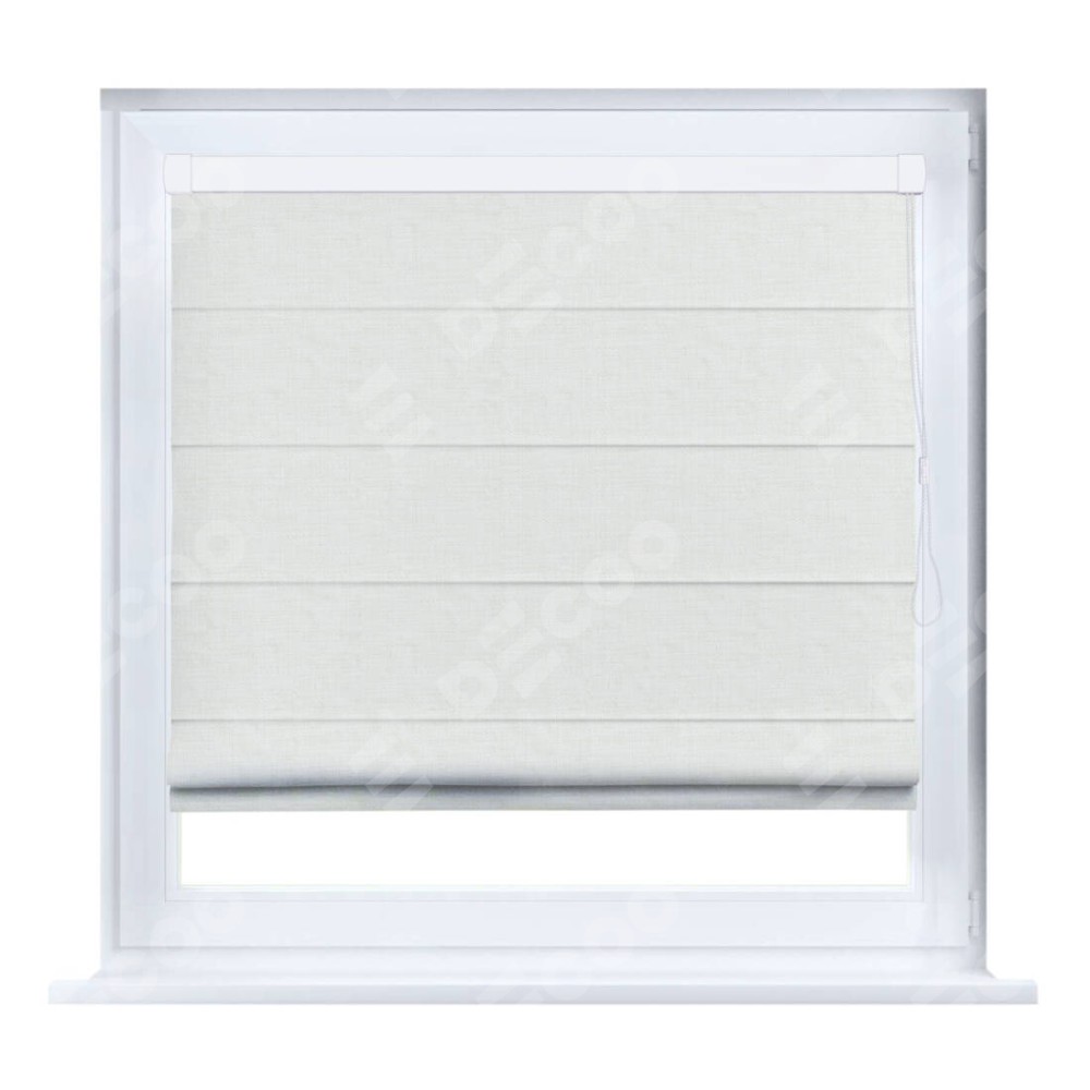 Римская штора производителя «Cortin», устанавливается на створку окна, пошита из ткани лён молочный, артикул 23568. Штора шьётся по индивидуальным размерам, для данного типа римской шторы возможная ширина от 35 до 150 см., высота до 250 см.