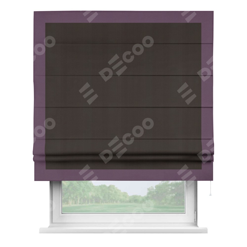 Римская штора производителя «Cortin», используется для проёма, пошита из ткани блэкаут однотонный венге, артикул ткани 88286. Отделка шторы кантом «Чесс», ткань для канта используется из блэкаута однотонного разной расцветки на выбор. Имеет универсальный механизм и подходит для монтажа: на потолок, на стену и в нишу.