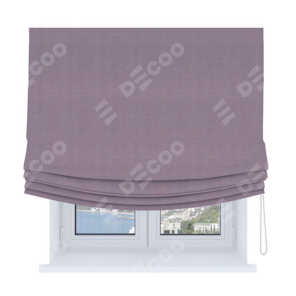 Римская штора Soft производителя «Cortin», используется для проёма, пошита из ткани блэкаут однотонный светло-сиреневый, артикул ткани 29333−1. Имеет универсальный механизм и подходит для монтажа: на потолок, на стену и в нишу. В отличие от стандартных римских штор, римская штора Soft не имеет горизонтальных вставок и нижнего отвеса. Это позволяет ткани произвольно драпироваться в свободные мягкие складки.