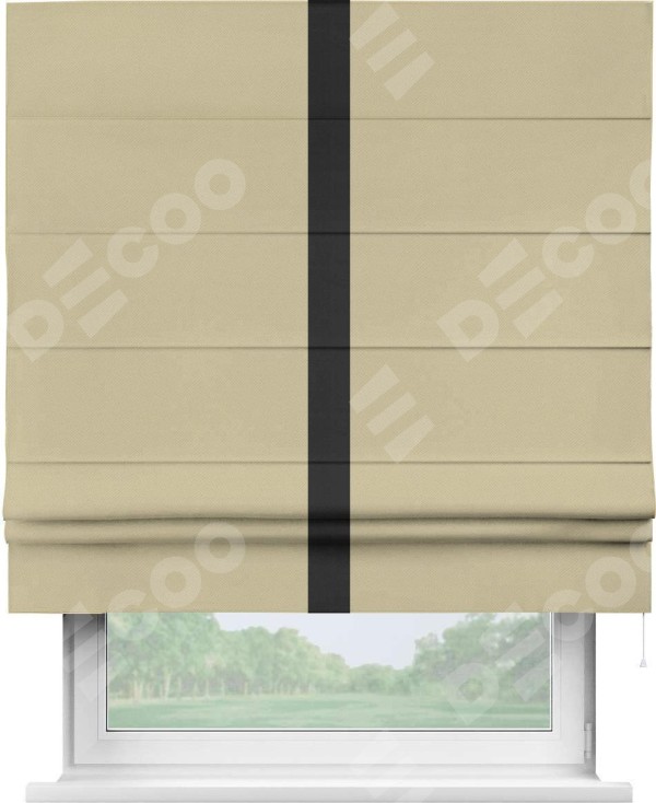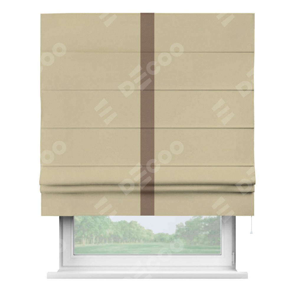 Римская штора производителя «Cortin», используется для проёма, пошита из ткани блэкаут однотонный кофейный, артикул ткани 13130. Отделка шторы кантом «Хайвей», ткань для канта используется из блэкаута однотонного разной расцветки на выбор. Имеет универсальный механизм и подходит для монтажа: на потолок, на стену и в нишу.