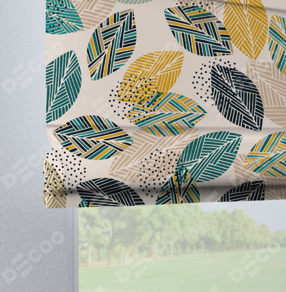 Римская штора на петлях «Листья с орнаментом»