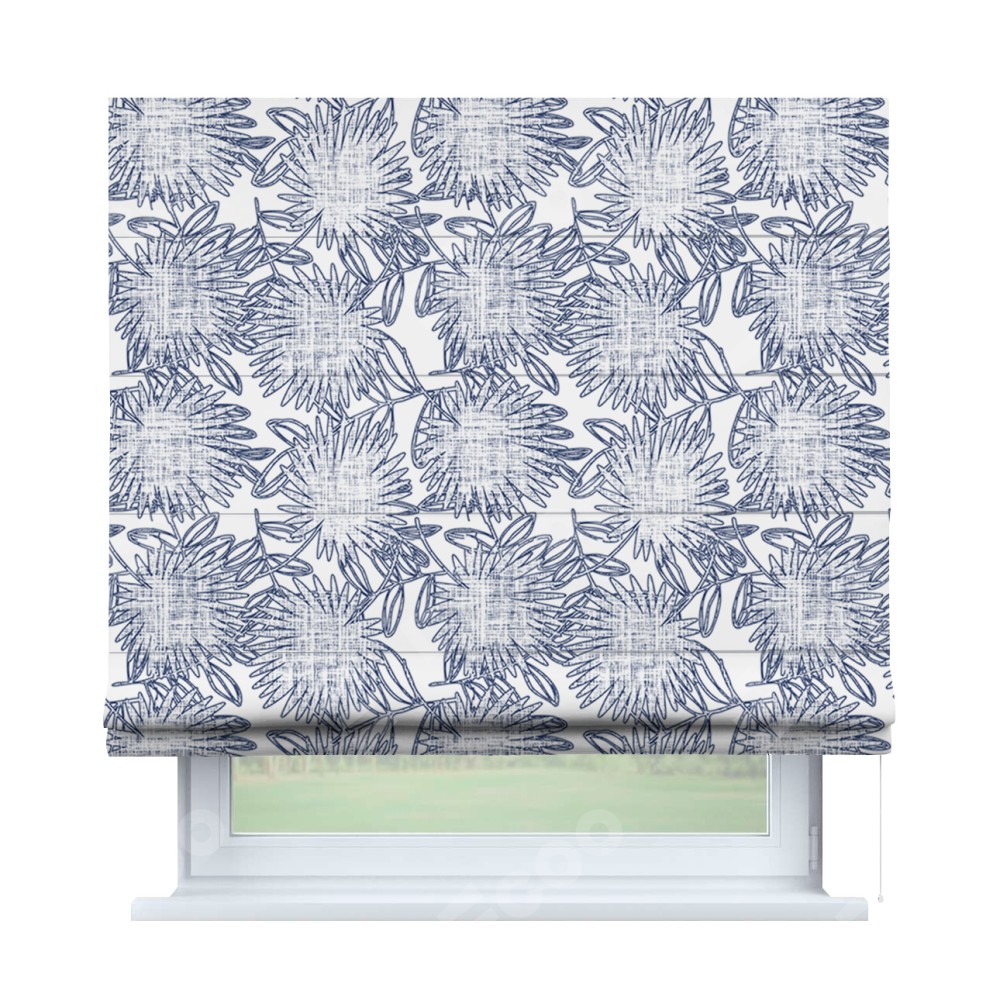 Римская штора производителя «Cortin», используется для проёма, пошита из ткани блэкаут с нанесением сублимационной печати «Синий букет». Имеет универсальный механизм и подходит для монтажа: на потолок, на стену и в нишу.