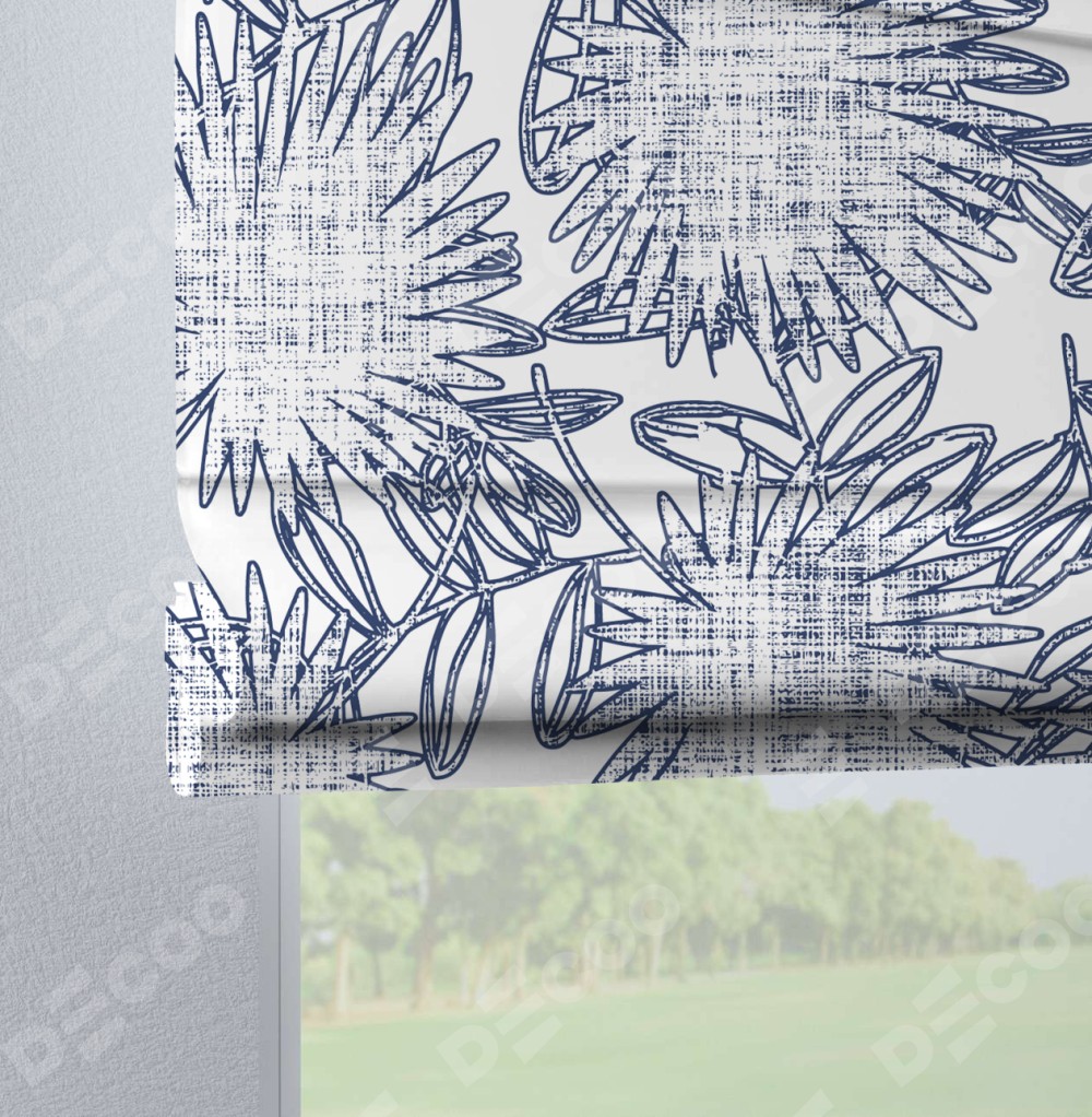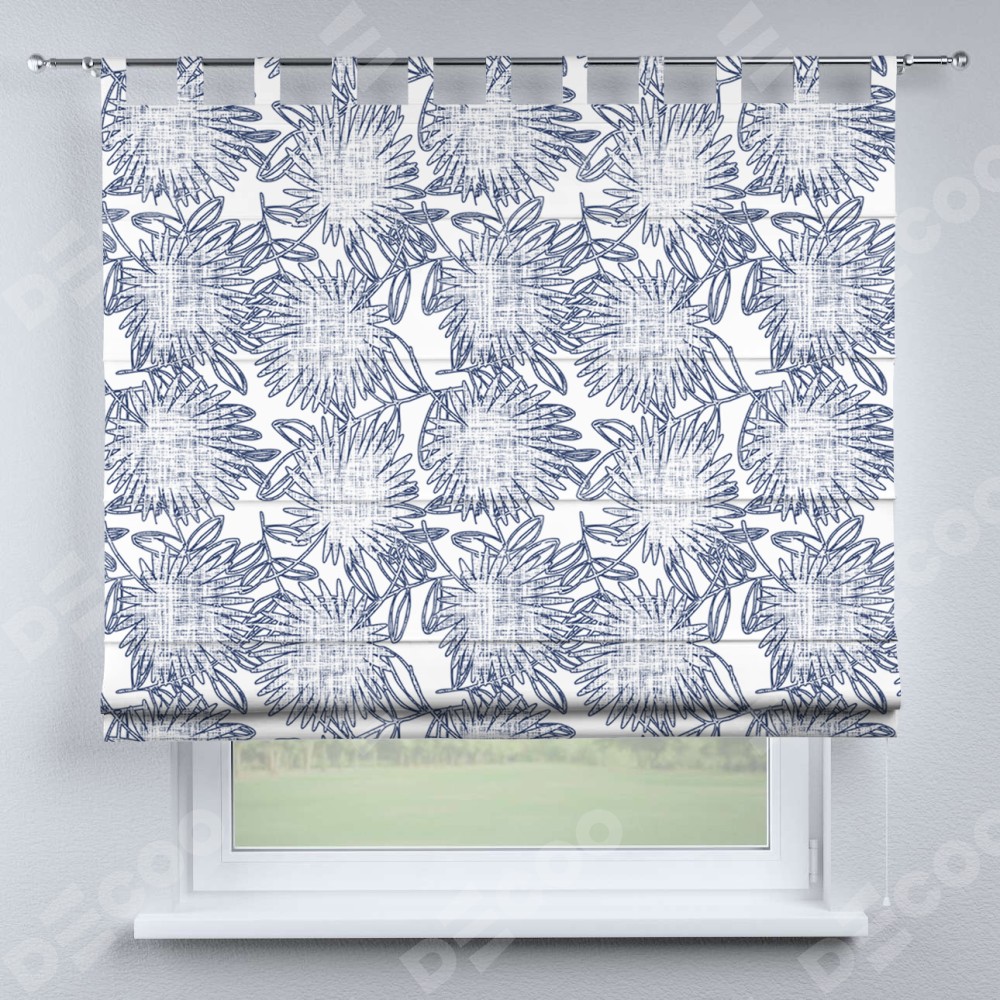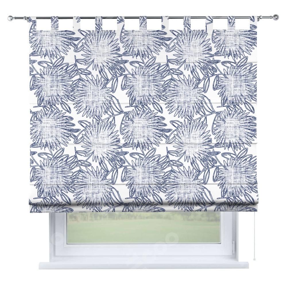 Римская штора на петлях «Синий букет»