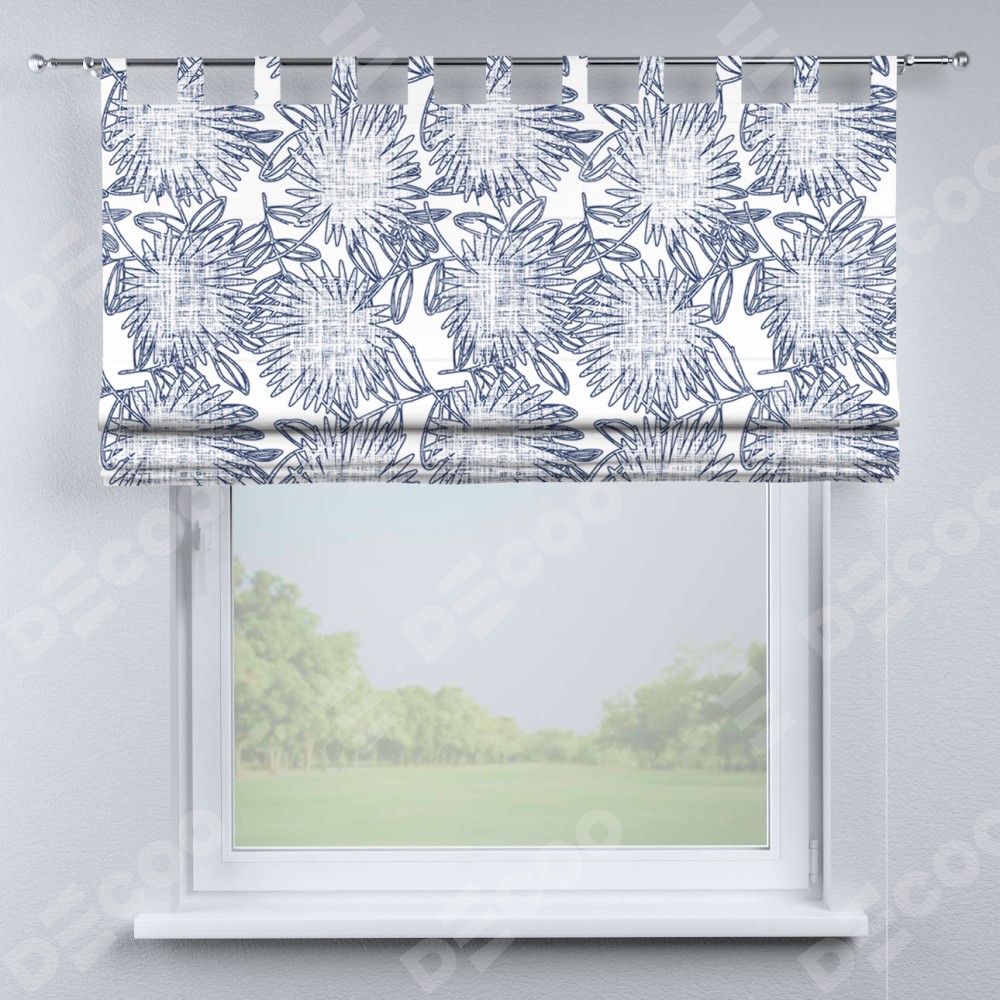 Римская штора производителя «Cortin», используется для проёма, пошита из ткани блэкаут с нанесением сублимационной печати «Синий букет». Данная модель пошита на петлях, комплектуется на выбор круглым карнизом и подходит для монтажа на стену. Римская штора на петлях имеет простую систему регулировки высоты, отличительным преимуществом данной модели является простой способ монтажа. Достаточно повесить ее на трубу и штора готова!