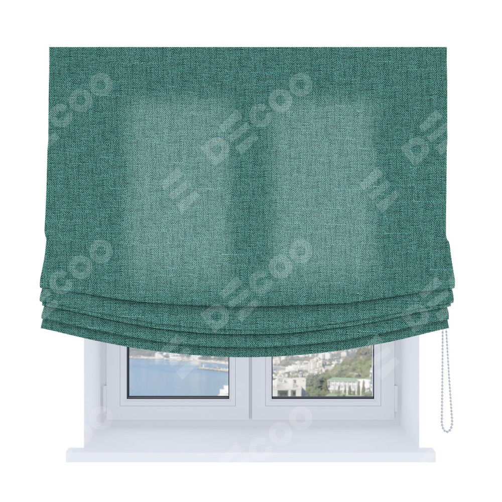 Римская штора Soft с мягкими складками, ткань лён кашемир бирюзовый