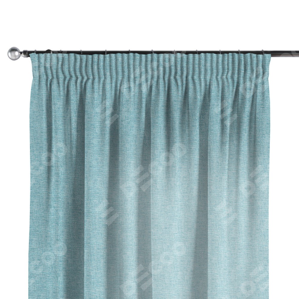 Комплект прямых штор, от производителя «Cortin», пошиты из ткани лён кашемир голубой, артикул ткани 21616. С изнаночной стороны в верхней части штор пристрачивается шторная лента с декоративными складками «Карандаш». Для создания элегантных складок прямые шторы шьются по стандарту с коэффициентом 1:2 (на 100 см. ширины проёма 200 см. ширины ткани).