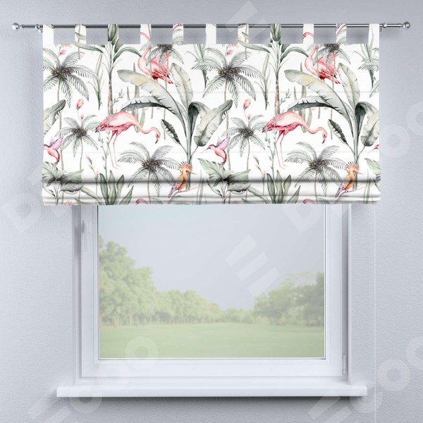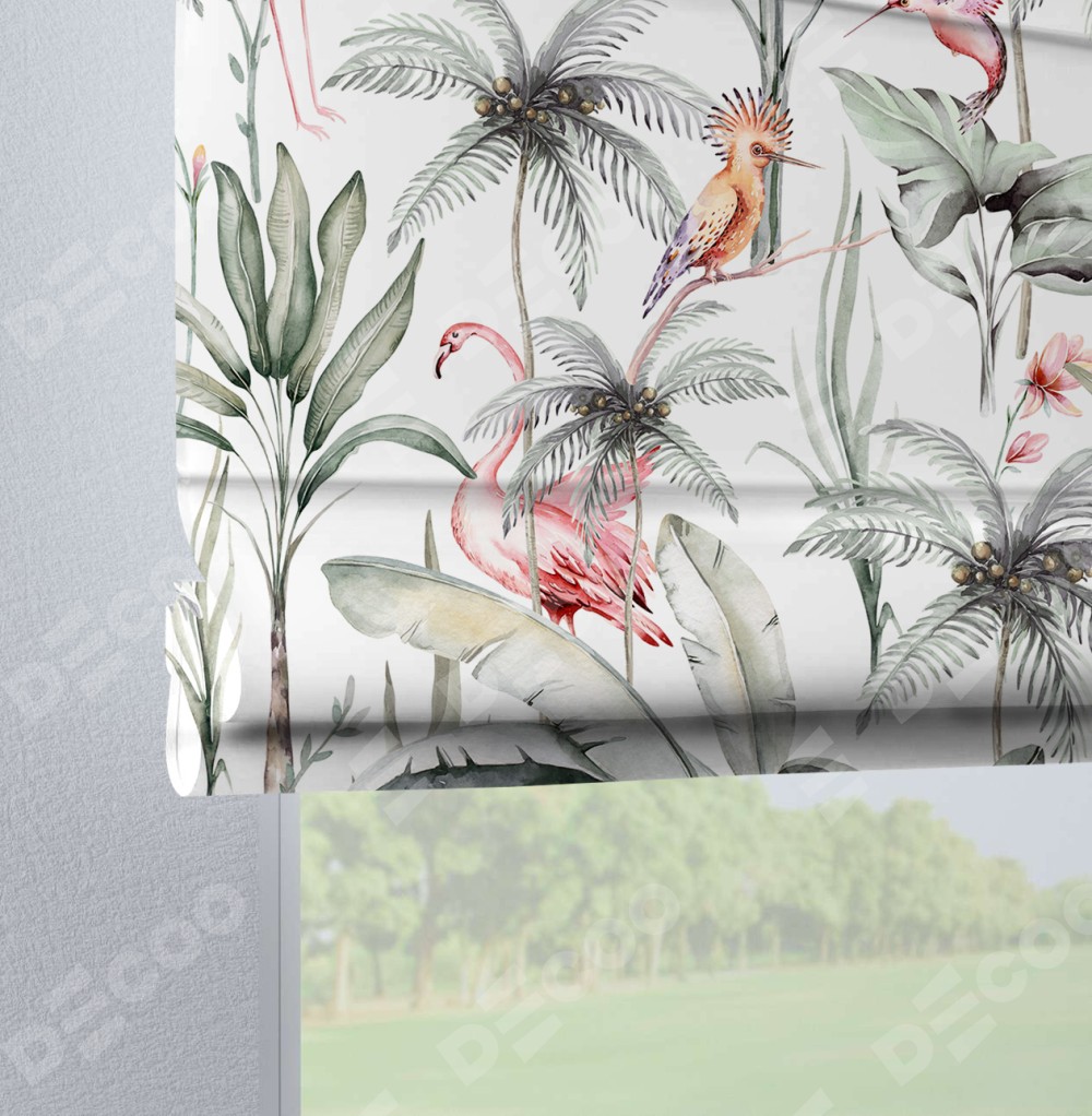 Римская штора производителя «Cortin», используется для проёма, пошита из ткани блэкаут с нанесением сублимационной печати «Изящные фламинго». Данная модель пошита на петлях, комплектуется на выбор круглым карнизом и подходит для монтажа на стену. Римская штора на петлях имеет простую систему регулировки высоты, отличительным преимуществом данной модели является простой способ монтажа. Достаточно повесить ее на трубу и штора готова!