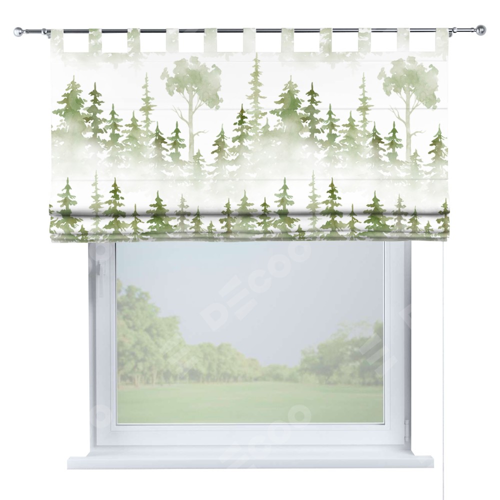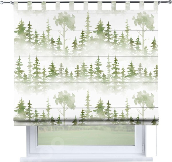 Римская штора производителя «Cortin», используется для проёма, пошита из ткани блэкаут с нанесением сублимационной печати «Туманный лес». Данная модель пошита на петлях, комплектуется на выбор круглым карнизом и подходит для монтажа на стену. Римская штора на петлях имеет простую систему регулировки высоты, отличительным преимуществом данной модели является простой способ монтажа. Достаточно повесить ее на трубу и штора готова!