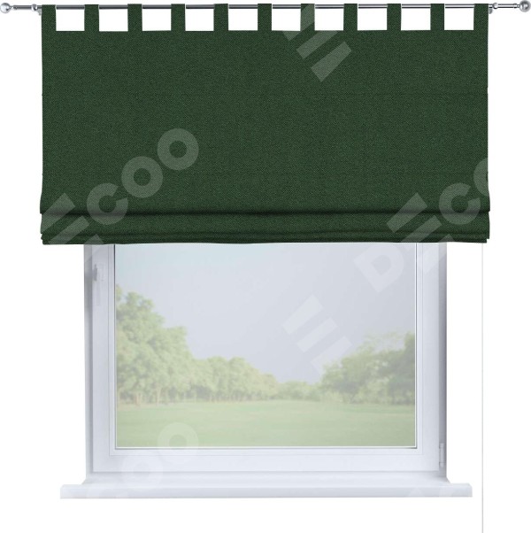 Римская штора производителя «Cortin», используется для проёма, пошита из ткани лён блэкаут зелёный, артикул ткани 69497. Данная модель пошита на петлях, комплектуется на выбор круглым карнизом и подходит для монтажа на стену. Римская штора на петлях имеет простую систему регулировки высоты, отличительным преимуществом данной модели является простой способ монтажа. Достаточно повесить ее на трубу и штора готова!