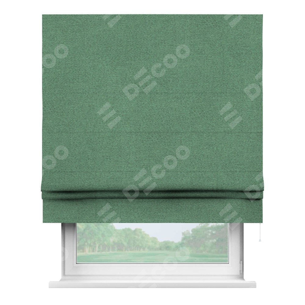 Римская штора производителя «Cortin», используется для проёма, пошита из ткани лён блэкаут светло-бирюзовый, артикул ткани 69443. Имеет универсальный механизм и подходит для монтажа: на потолок, на стену и в нишу.