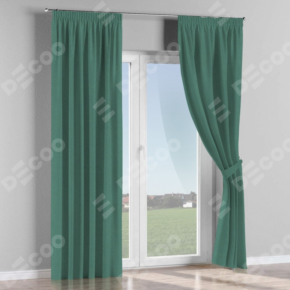 Комплект штор на тесьме «Карандаш», лён блэкаут бирюзовый