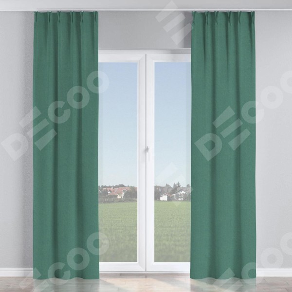 Комплект прямых штор, от производителя «Cortin», пошиты из ткани лён блэкаут бирюзовый, артикул ткани 69517. С изнаночной стороны в верхней части штор пристрачивается шторная лента с декоративными складками «Кустик». Для создания элегантных складок прямые шторы шьются по стандарту с коэффициентом 1:2 (на 100 см. ширины проёма 200 см. ширины ткани).