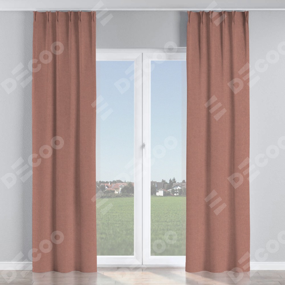 Комплект прямых штор, от производителя «Cortin», пошиты из ткани лён блэкаут розовый, артикул ткани 69575. С изнаночной стороны в верхней части штор пристрачивается шторная лента с декоративными складками «Кустик». Для создания элегантных складок прямые шторы шьются по стандарту с коэффициентом 1:2 (на 100 см. ширины проёма 200 см. ширины ткани).