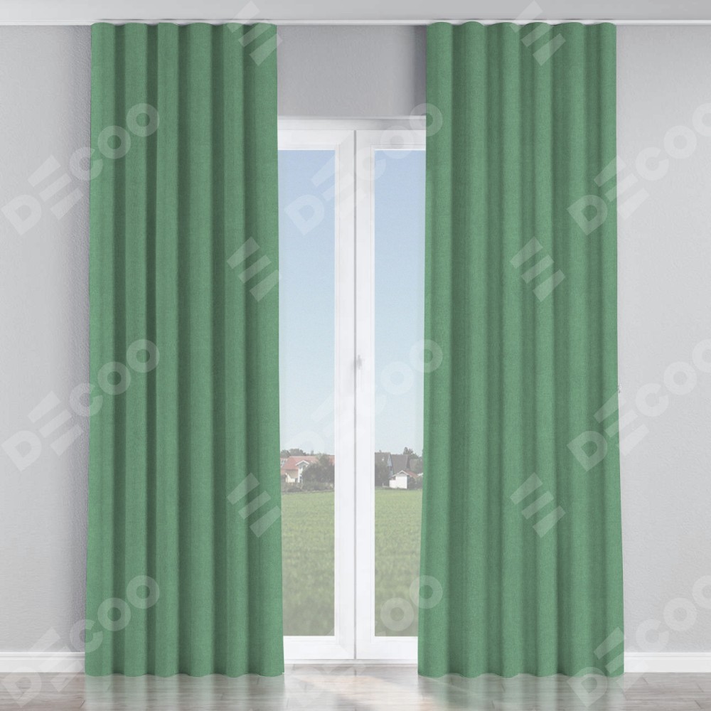 Комплект прямых штор, от производителя «Cortin», пошиты из ткани лён блэкаут светло-бирюзовый, артикул ткани 69443. С изнаночной стороны в верхней части штор пристрачивается шторная лента с декоративными складками «Волна». Для создания элегантных складок прямые шторы шьются по стандарту с коэффициентом 1:2 (на 100 см. ширины проёма 200 см. ширины ткани).