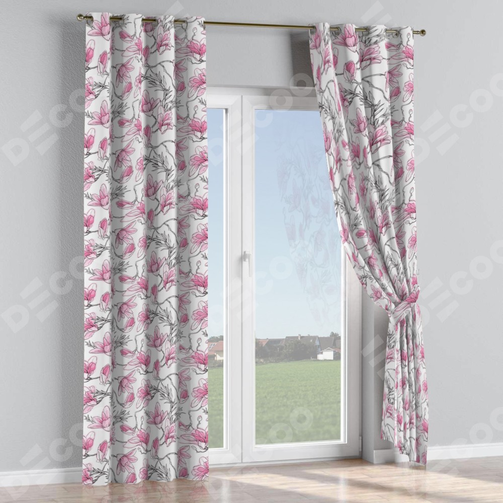 Комплект прямых штор, от производителя «Cortin», пошиты из ткани блэкаут с нанесением сублимационной печати «Цветки магнолии». Данная модель пошита на люверсах, комплектуется на выбор круглым карнизом и подходит для монтажа на стену или потолок. Прямые шторы на люверсах шьются по стандарту с коэффициентом 1/2 (на 100 см. ширины проёма 200 см. ширины ткани), отличительным преимуществом данной модели является простой способ монтажа. Достаточно повесить ее на трубу и штора готова!