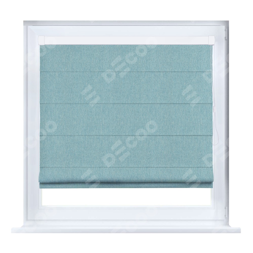 Римская штора производителя «Cortin», устанавливается на створку окна, пошита из ткани твид блэкаут небесно-голубой, артикул 21578. Штора шьётся по индивидуальным размерам, для данного типа римской шторы возможная ширина от 35 до 150 см., высота до 250 см.