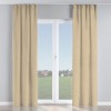 Комплект прямых штор, от производителя «Cortin», пошиты из ткани блэкаут однотонный кофейно-бежевый, артикул ткани 12095−1. С изнаночной стороны в верхней части штор пристрачивается шторная лента с декоративными складками «Кустик». Для создания элегантных складок прямые шторы шьются по стандарту с коэффициентом 1:2 (на 100 см. ширины проёма 200 см. ширины ткани).