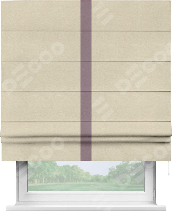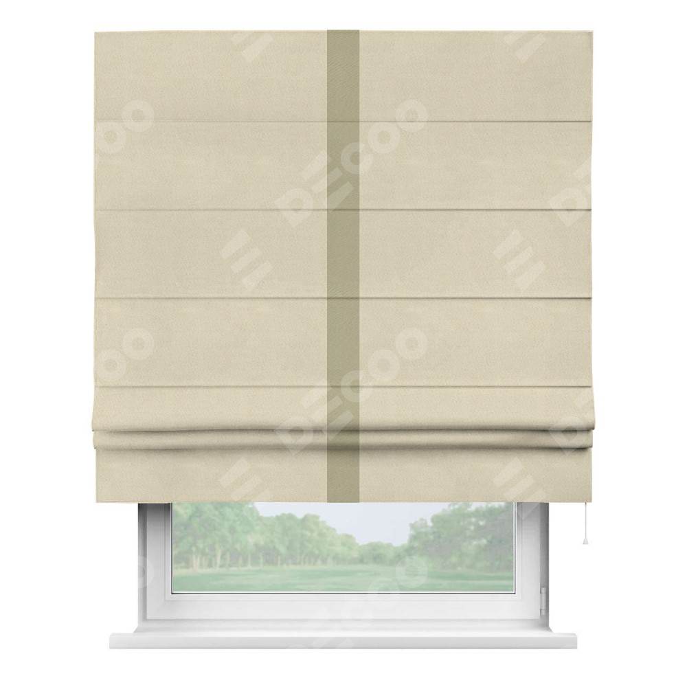 Римская штора производителя «Cortin», используется для проёма, пошита из ткани блэкаут однотонный бежевый, артикул ткани 13125. Отделка шторы кантом «Хайвей», ткань для канта используется из блэкаута однотонного разной расцветки на выбор. Имеет универсальный механизм и подходит для монтажа: на потолок, на стену и в нишу.