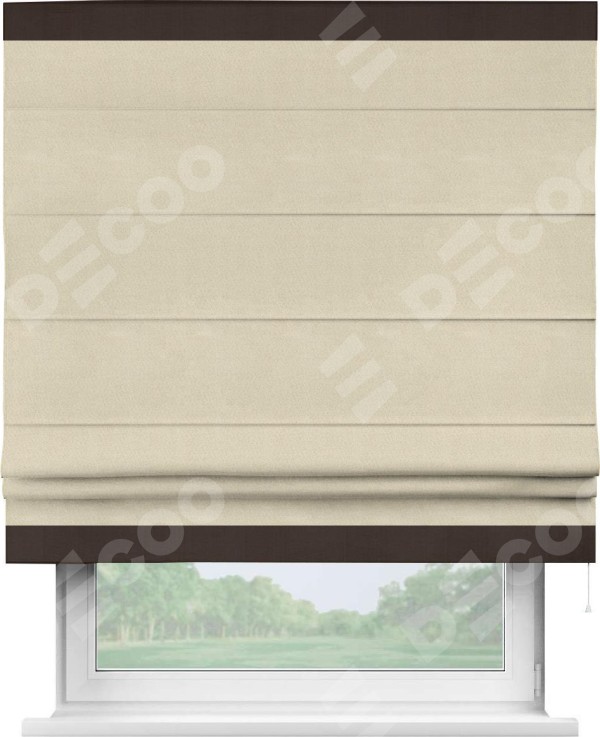 Римская штора «Кортин» с кантом Горизонт, для проема, ткань блэкаут однотонный цвет бежевый