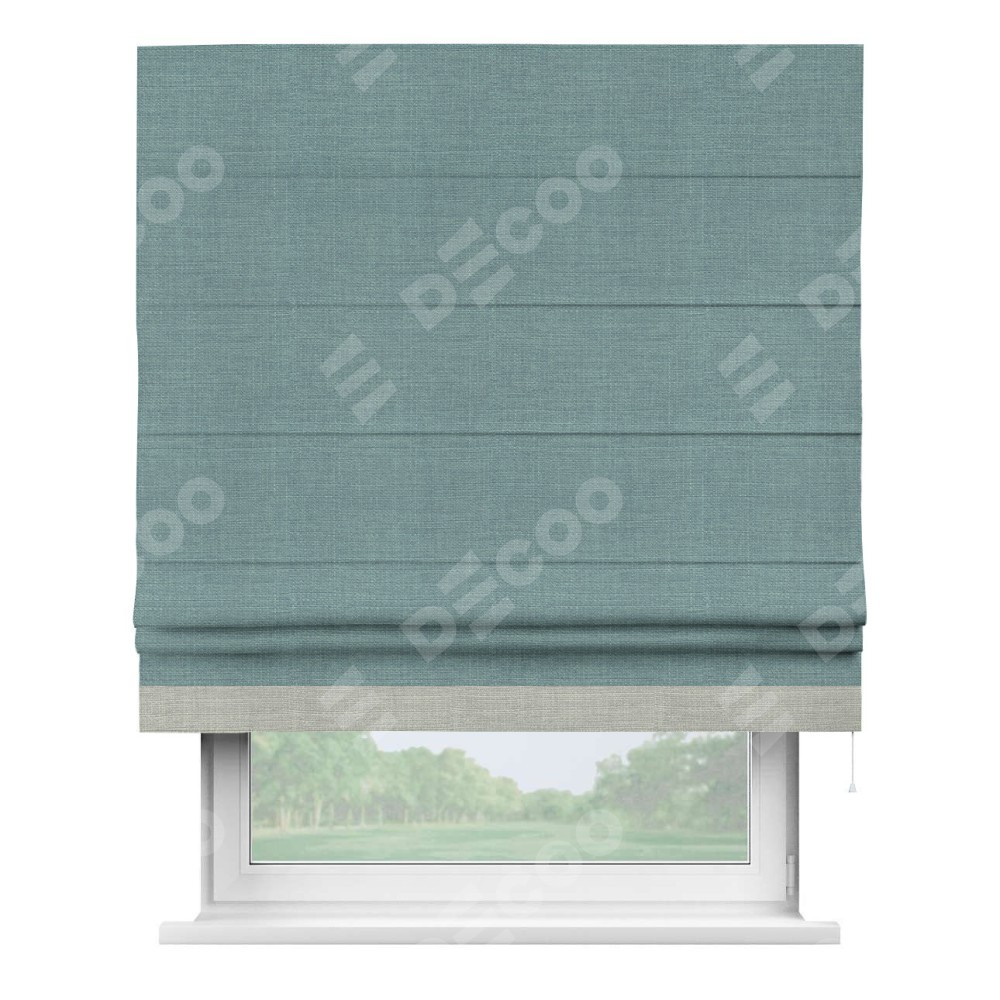 Римская штора «Кортин» с отделкой кантом Джестер, для проема, лён голубой