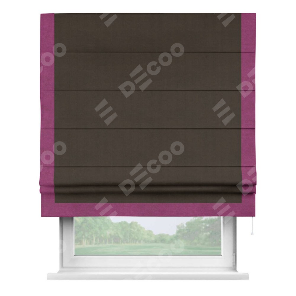 Римская штора «Кортин» с кантом Виктория, для проема, ткань вельвет тёмно-коричневый