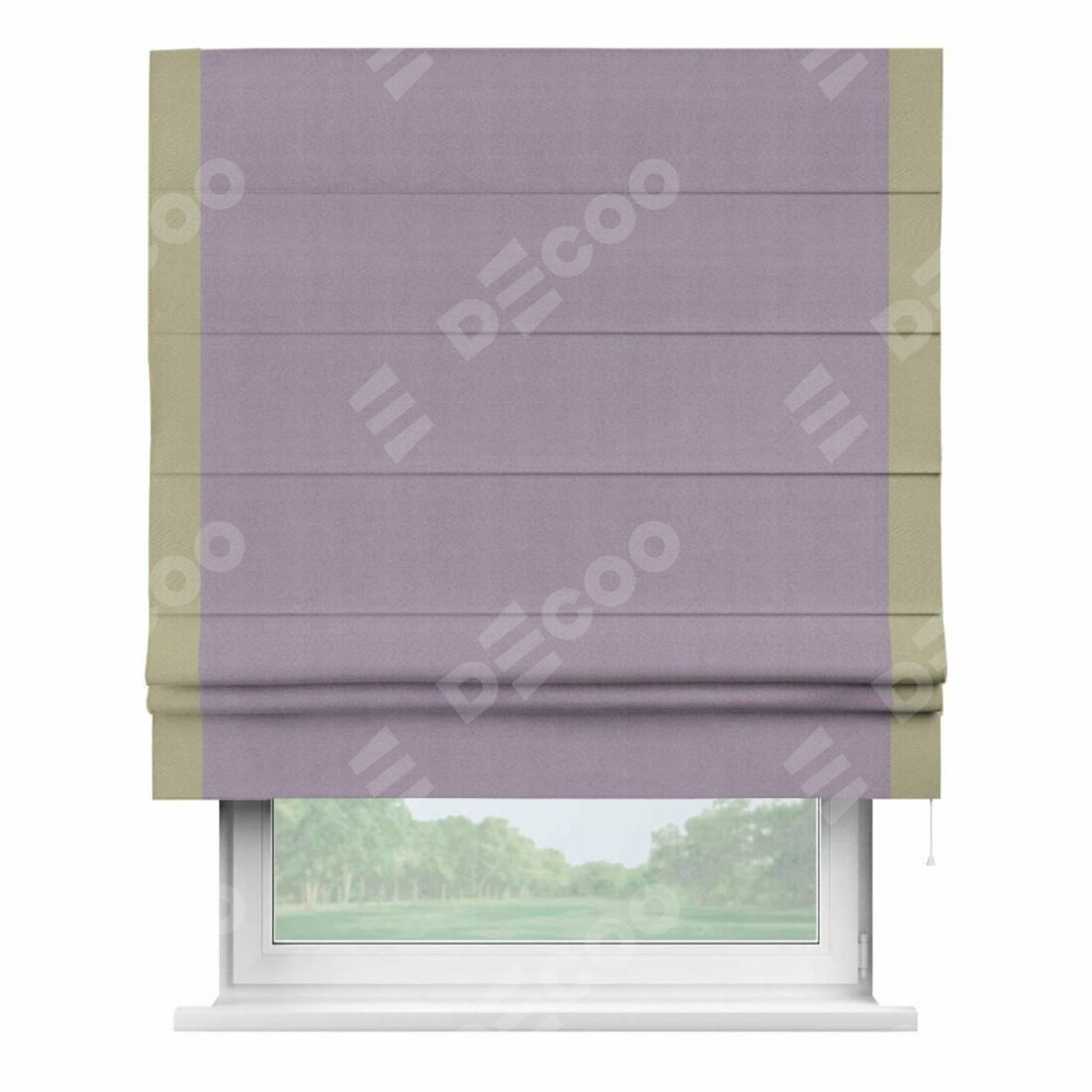 Римская штора «Кортин» с кантом Стрим Дуо, для проема, ткань блэкаут однотонный светло-сиреневый