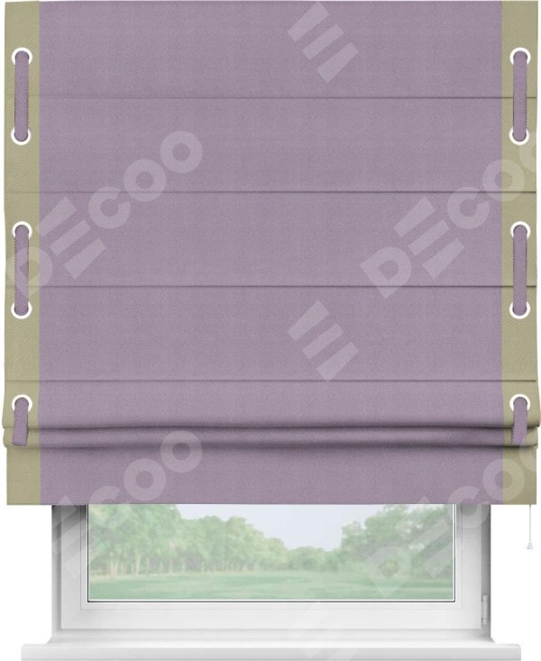 Римская штора «Кортин» с кантом Стрим Дуо (люверсы с пояском), для проема, ткань блэкаут однотонный светло-сиреневый