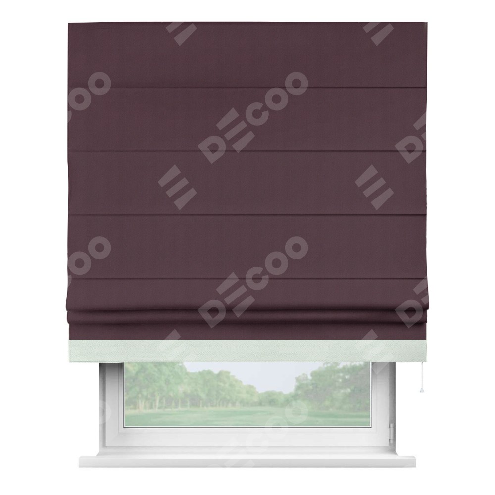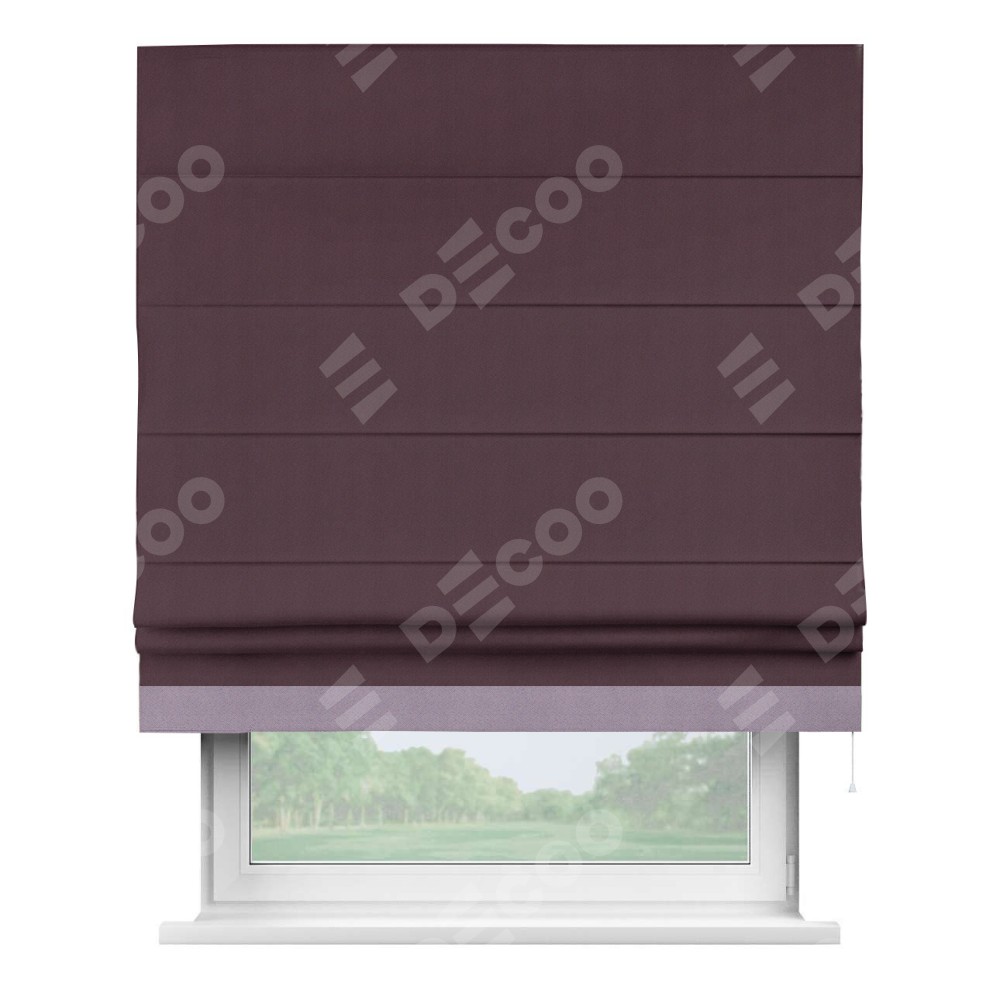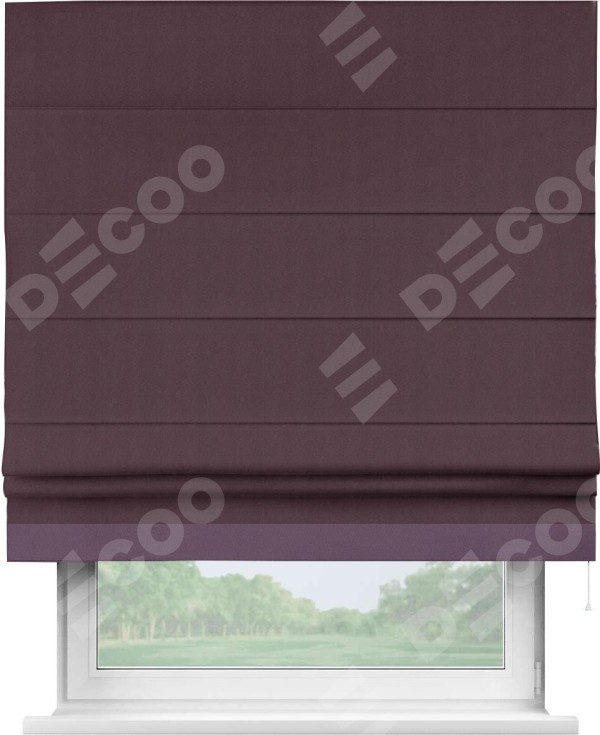 Римская штора производителя «Cortin», используется для проёма, пошита из ткани блэкаут однотонный сиреневый, артикул ткани 29333−2. Отделка шторы кантом «Джестер», ткань для канта используется из блэкаута однотонного разной расцветки на выбор. Имеет универсальный механизм и подходит для монтажа: на потолок, на стену и в нишу.