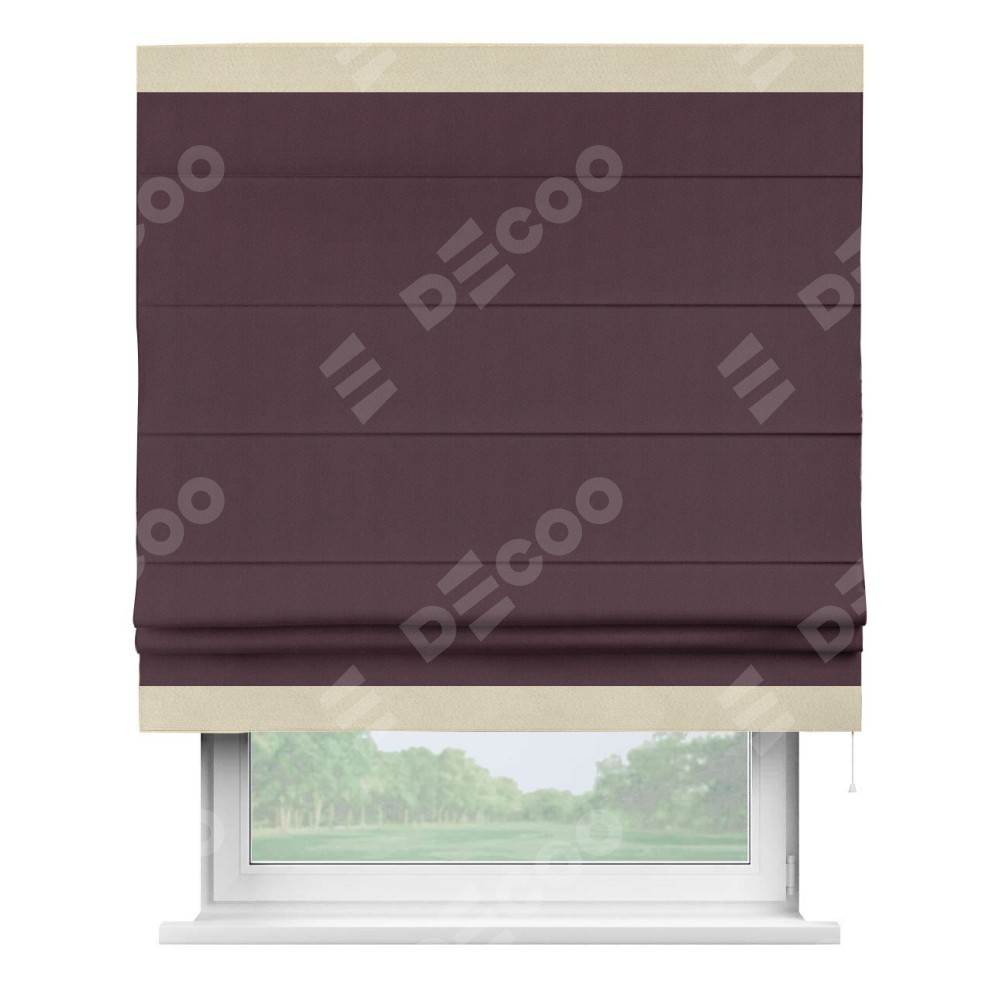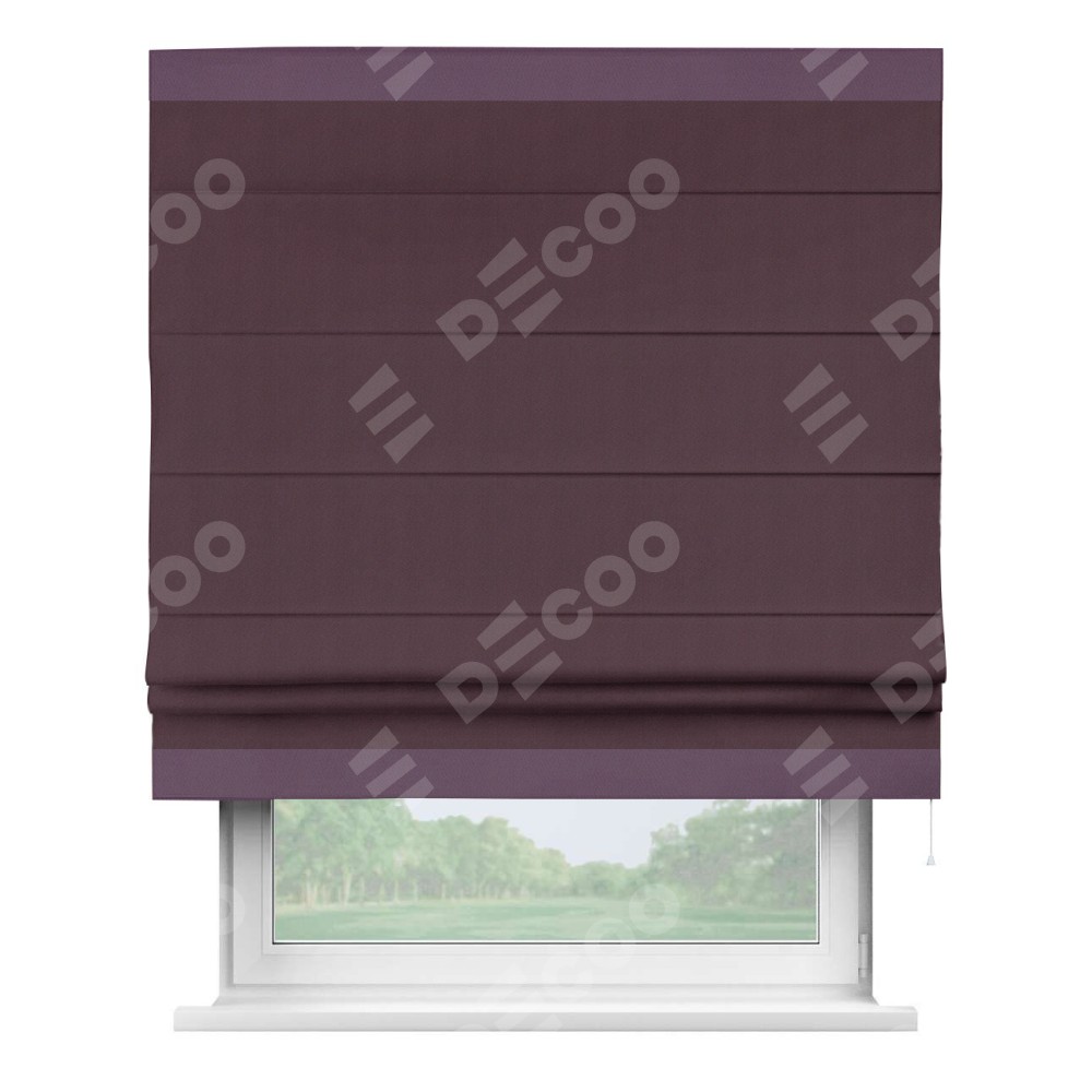 Римская штора производителя «Cortin», используется для проёма, пошита из ткани блэкаут однотонный сиреневый, артикул ткани 29333−2. Отделка шторы кантом «Горизонт», ткань для канта используется из блэкаута однотонного разной расцветки на выбор. Имеет универсальный механизм и подходит для монтажа: на потолок, на стену и в нишу.