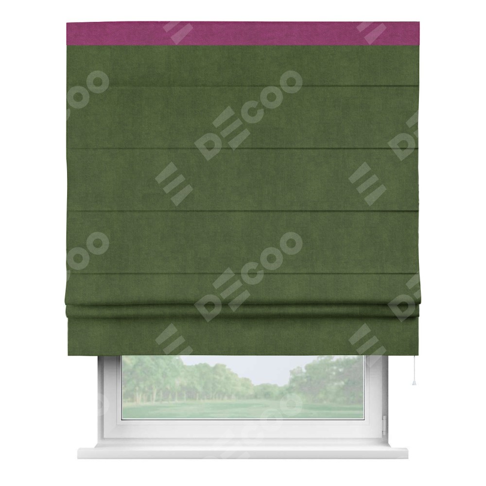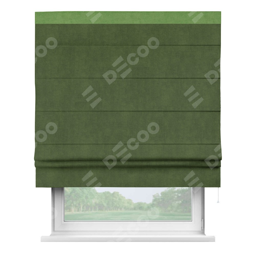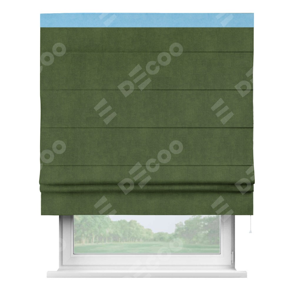 Римская штора «Кортин» с кантом Кинг, для проема, ткань вельвет тёмно-салатовый