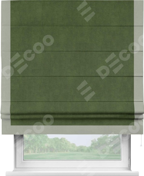Римская штора «Кортин» с кантом Виктория, для проема, ткань вельвет тёмно-салатовый