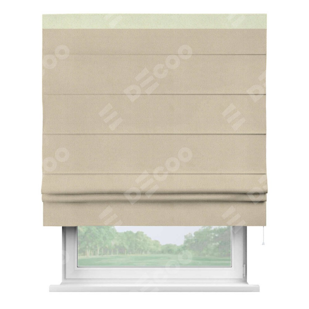 Римская штора производителя «Cortin», используется для проёма, пошита из ткани блэкаут однотонный кофейно-бежевый, артикул ткани 12095−1. Отделка шторы кантом «Кинг», ткань для канта используется из блэкаута однотонного разной расцветки на выбор. Имеет универсальный механизм и подходит для монтажа: на потолок, на стену и в нишу.