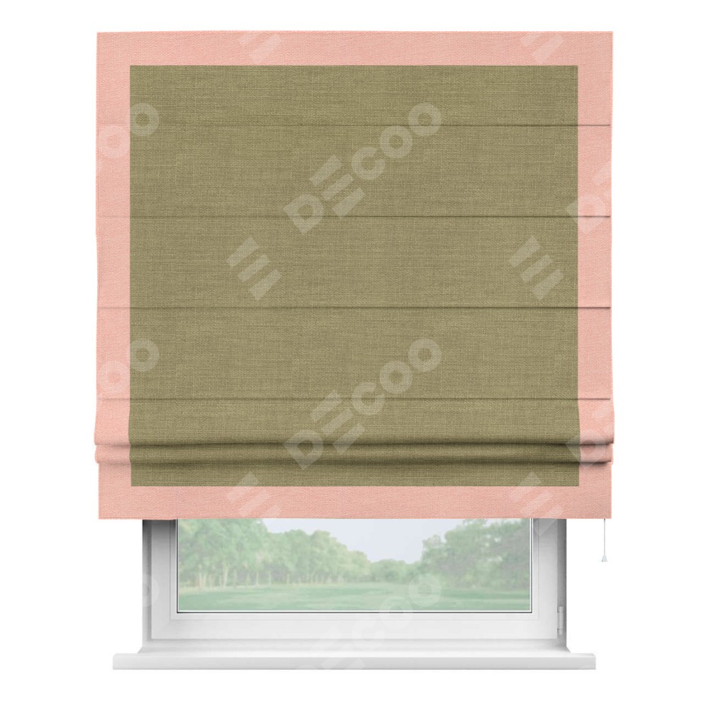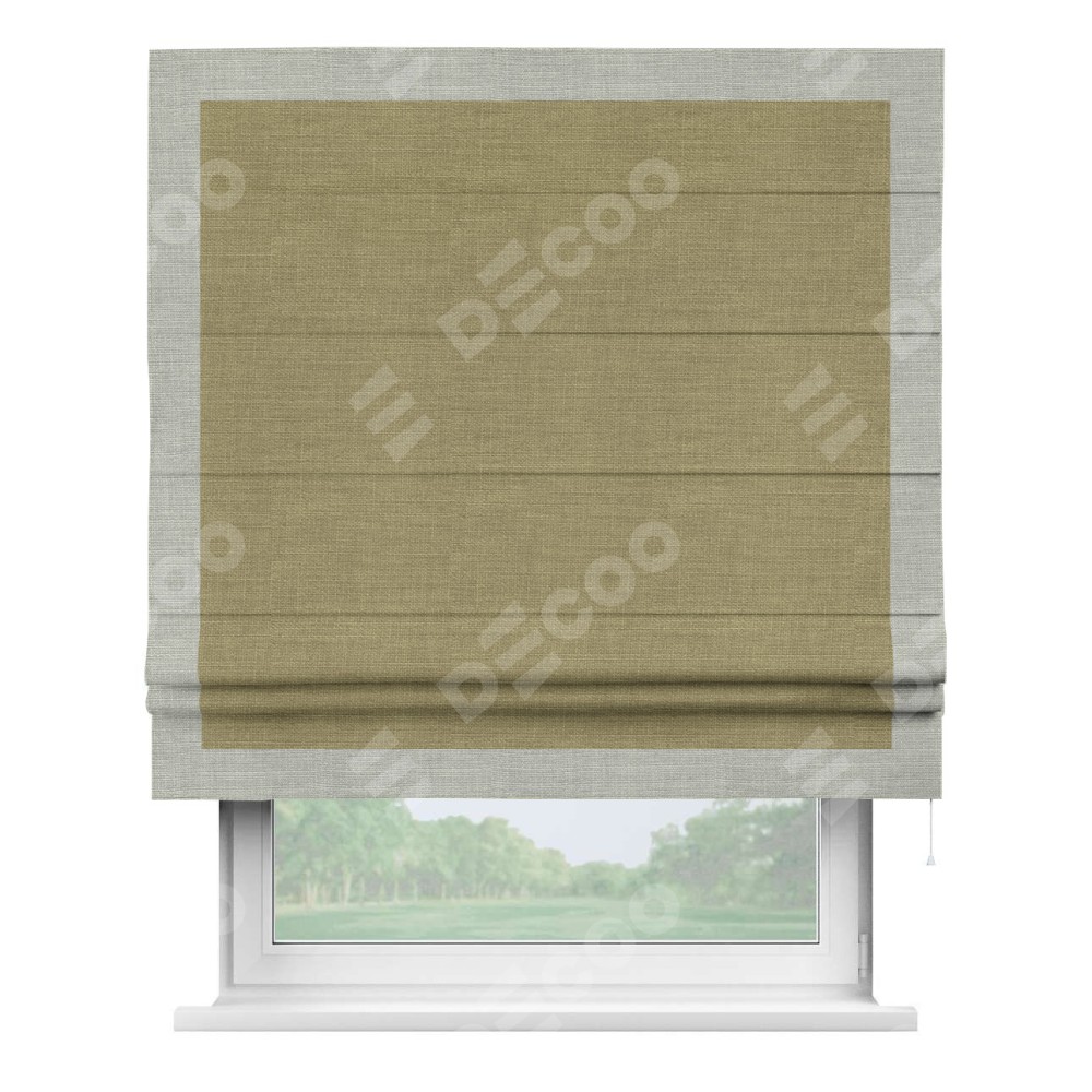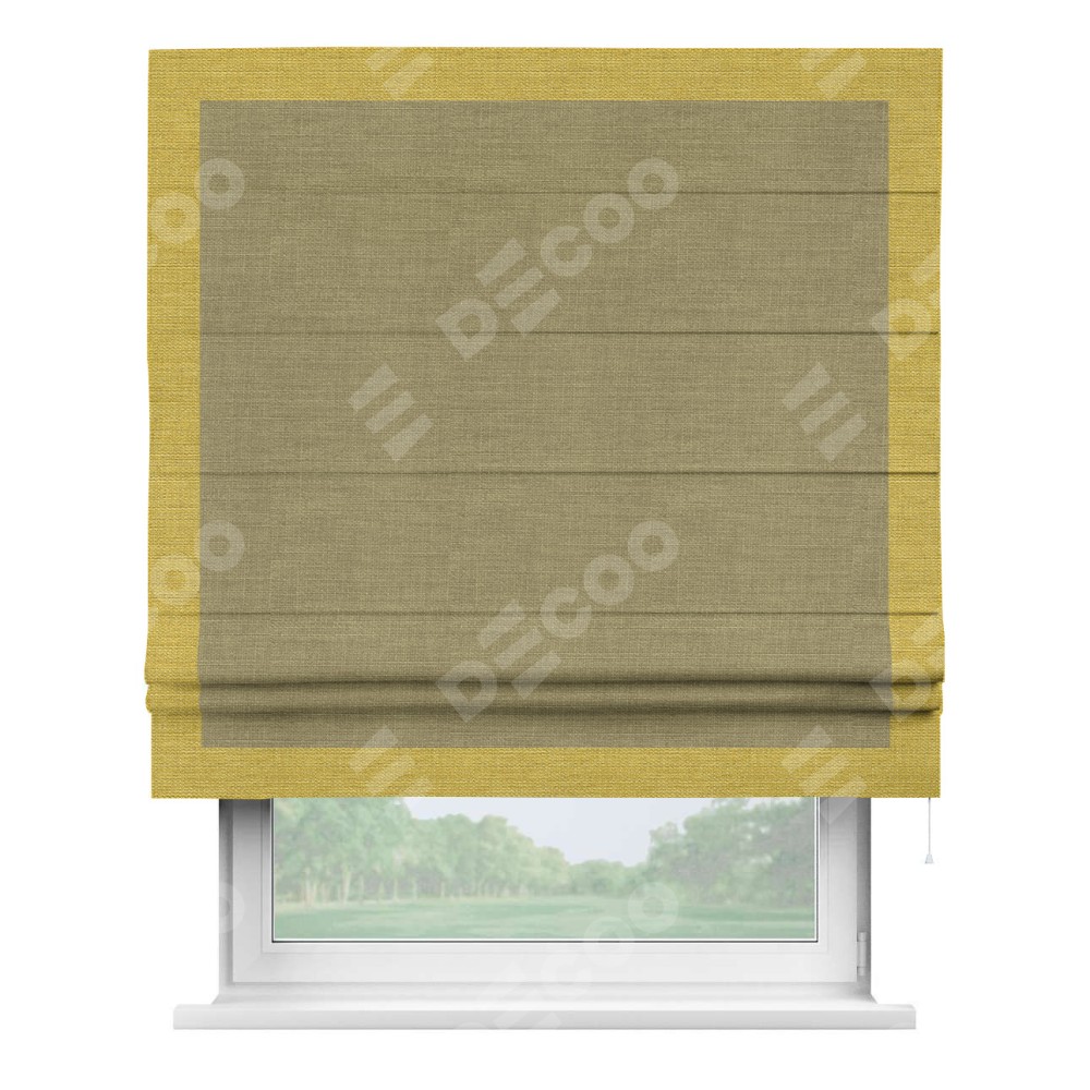 Римская штора «Кортин» с кантом Чесс, для проема, ткань лён, цвет коричневый
